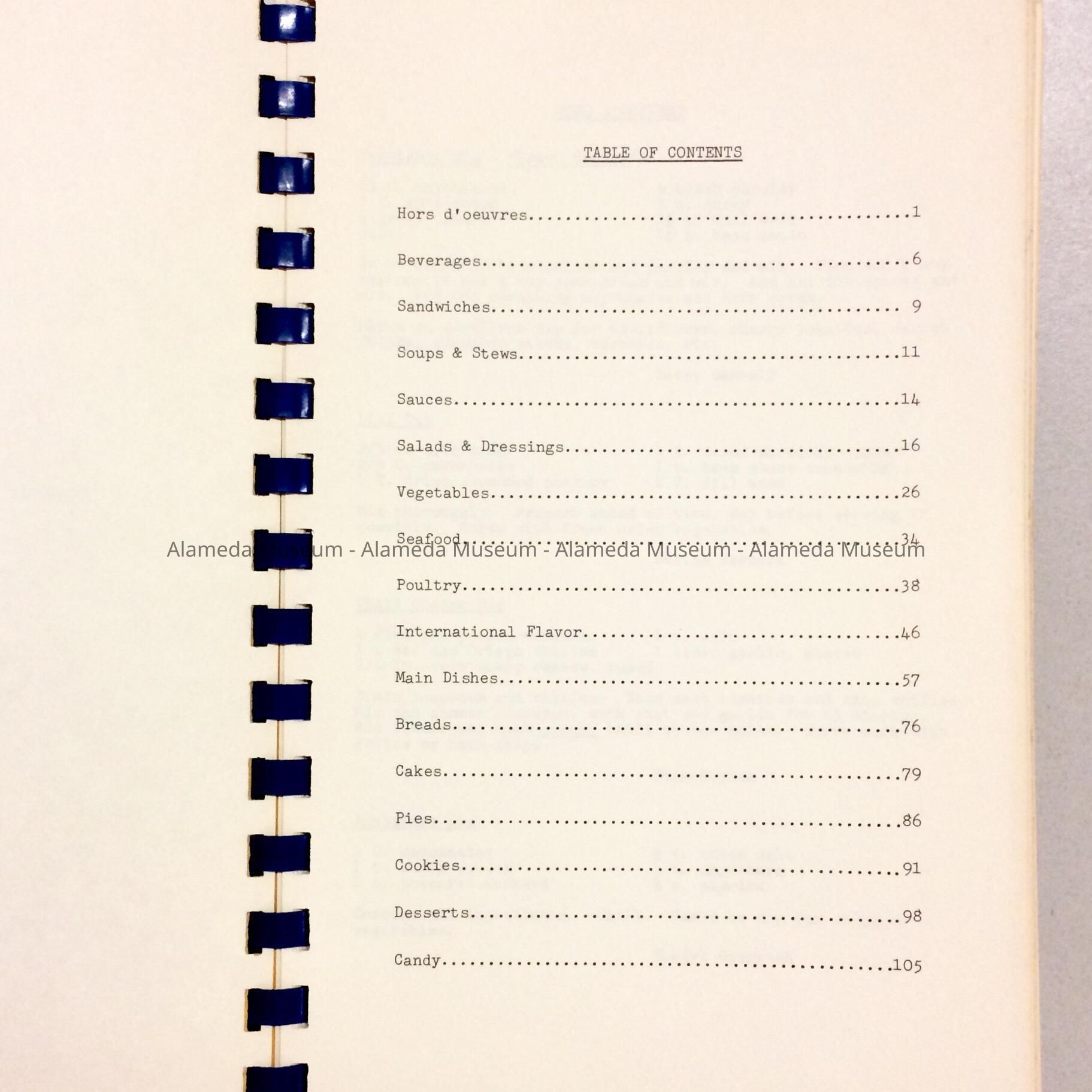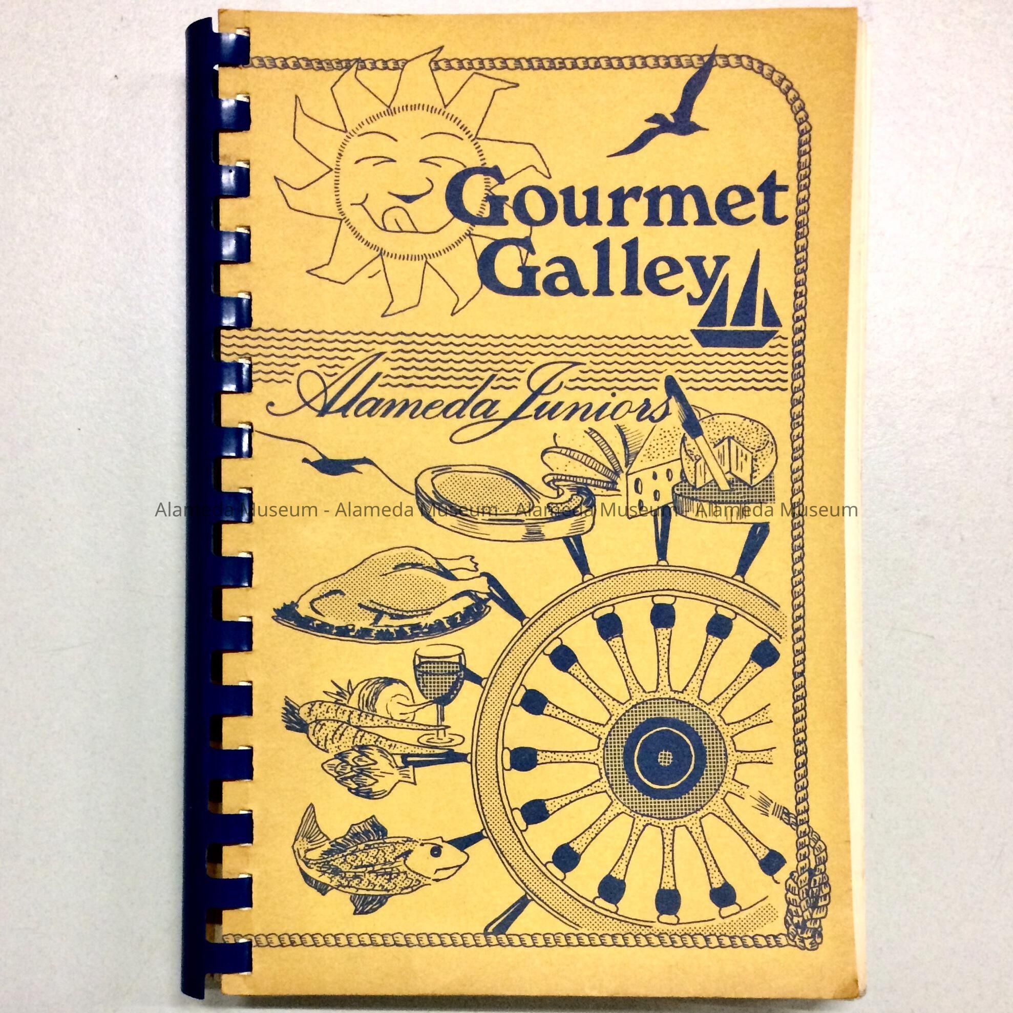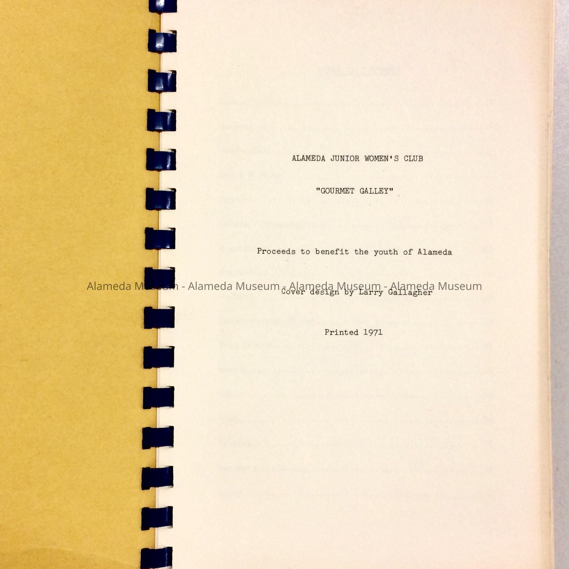 A COOKBOOK ISSUED BY THE ALAMEDA JUNIOR WOMEN'S CLUB. ENTITLED "GOURMET GALLEY," PRODUCED TO BENEFIT THE YOUTH OF ALAMEDA. PRINTED IN 1971. THE RECIPES INCLUDE NAMES OF THE CONTRIBUTORS.