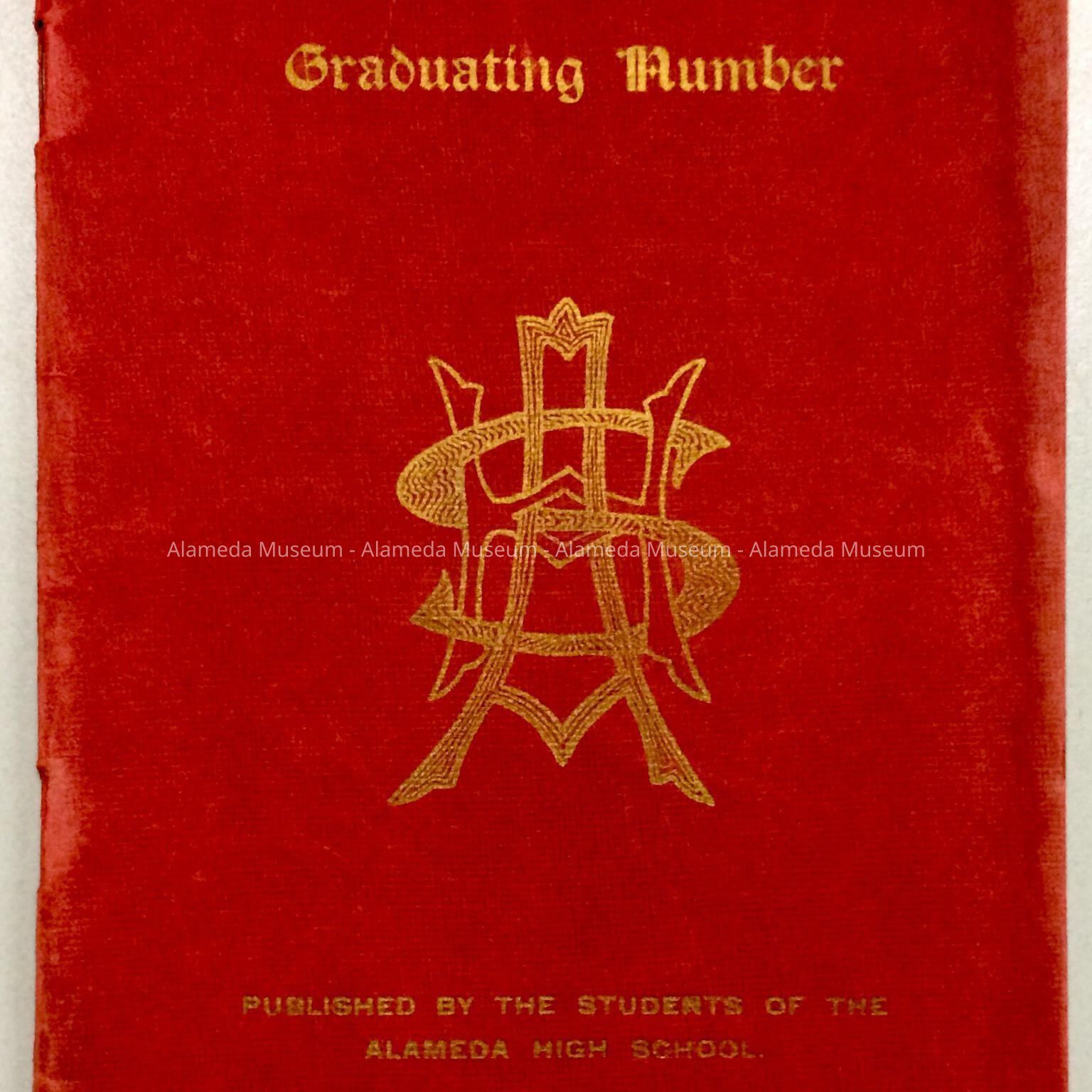 A SOFT-BOUND BOOKLET, WITH COVER OF RED-COLORED PAPER AND BOLD-PRINTED CAPTION, "ALAMEDA HIGH SCHOOL," IN GOLD-COLORED TYPE.