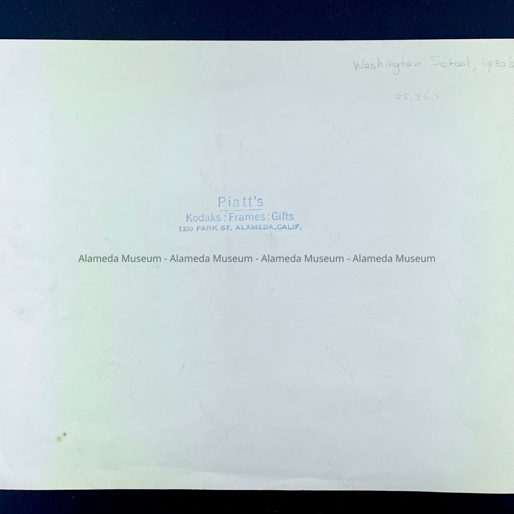 History of Object: Graduation class photo of an unknown class, on the steps of what appears to be Washington School. 1930s clothing style?