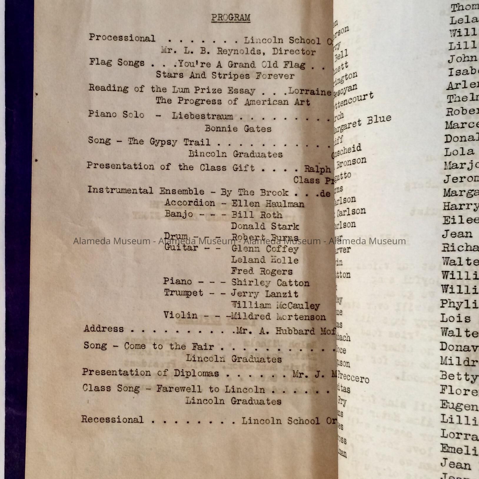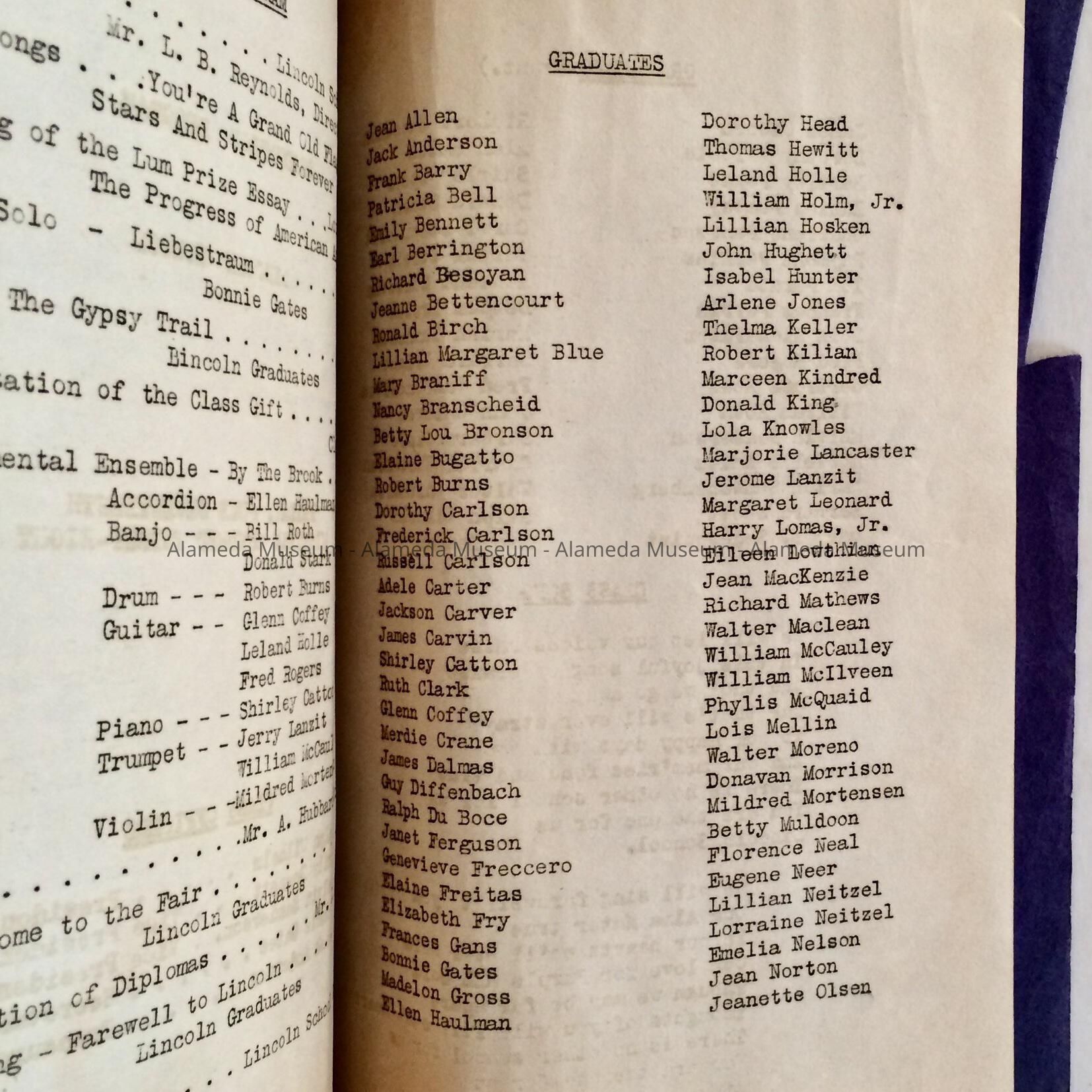 Graduation Program, Lincoln School, June 1938Entry/Object ID