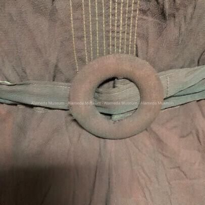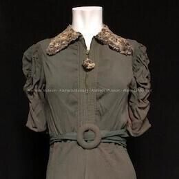 Green crepe one-piec dress with imitation lamb's wool trim, c. 1940sEntry/Object ID