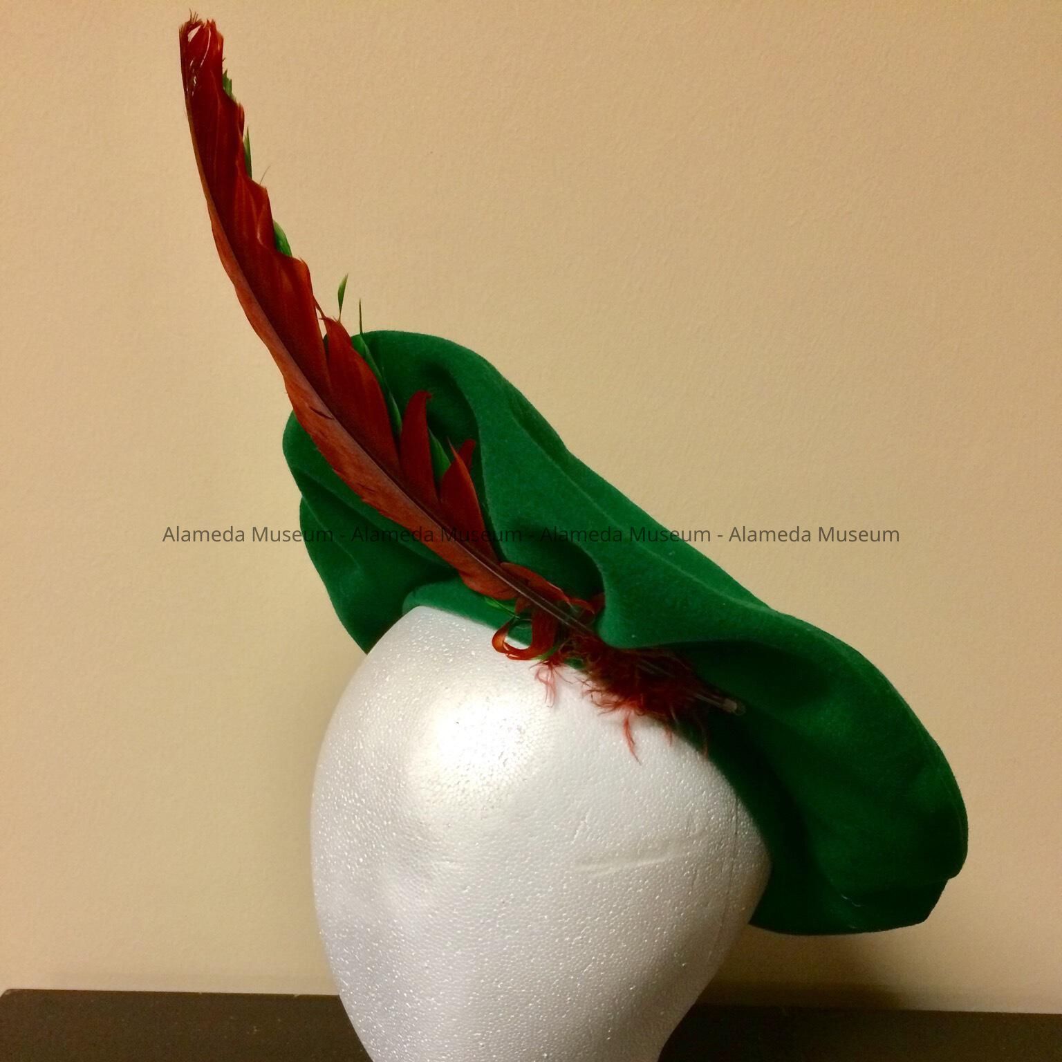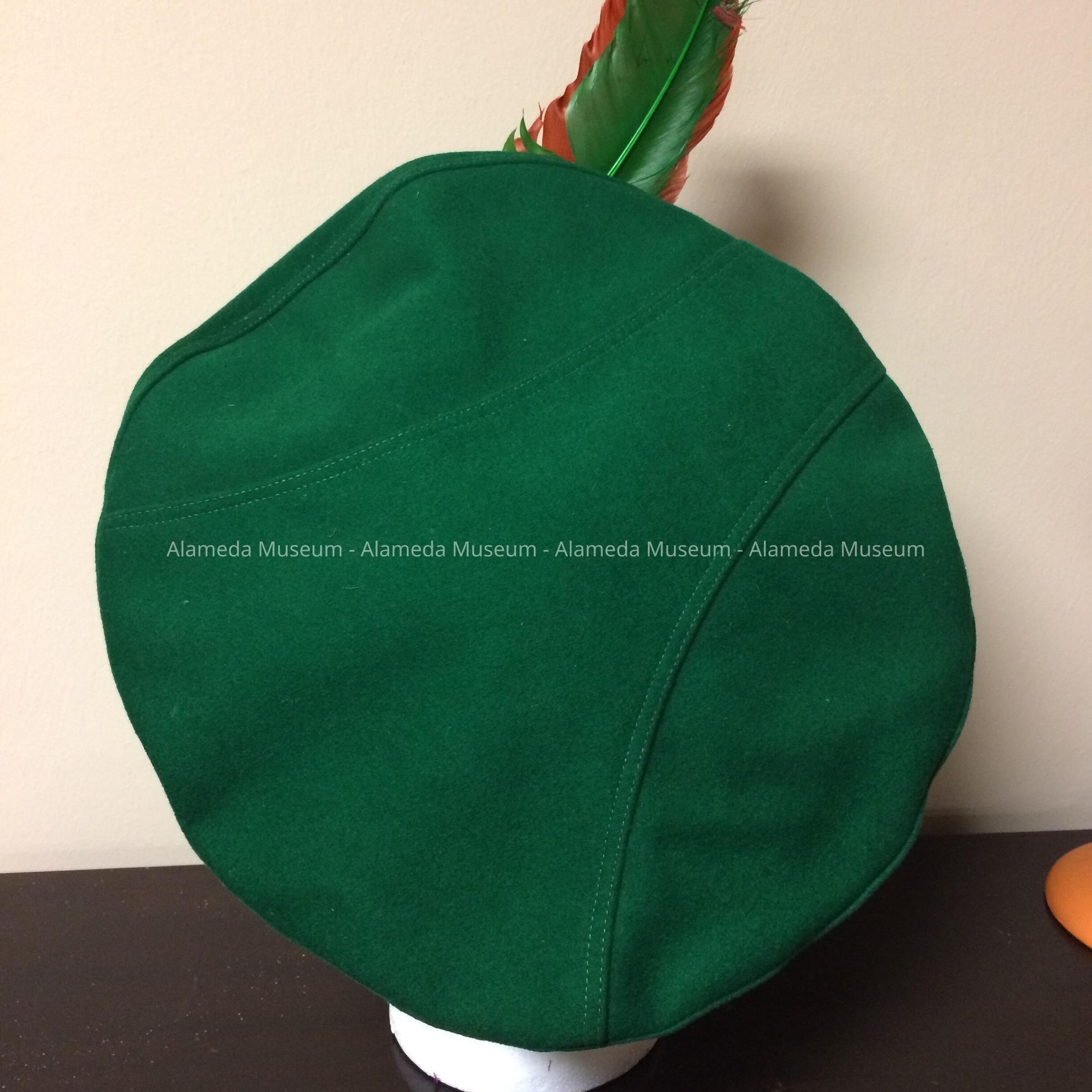 Green felt Scottish beret hat with two feathers, c. 1940sEntry/Object ID