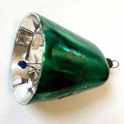 Green Glass Cow Bell Christmas Ornament, 1920sEntry/Object ID