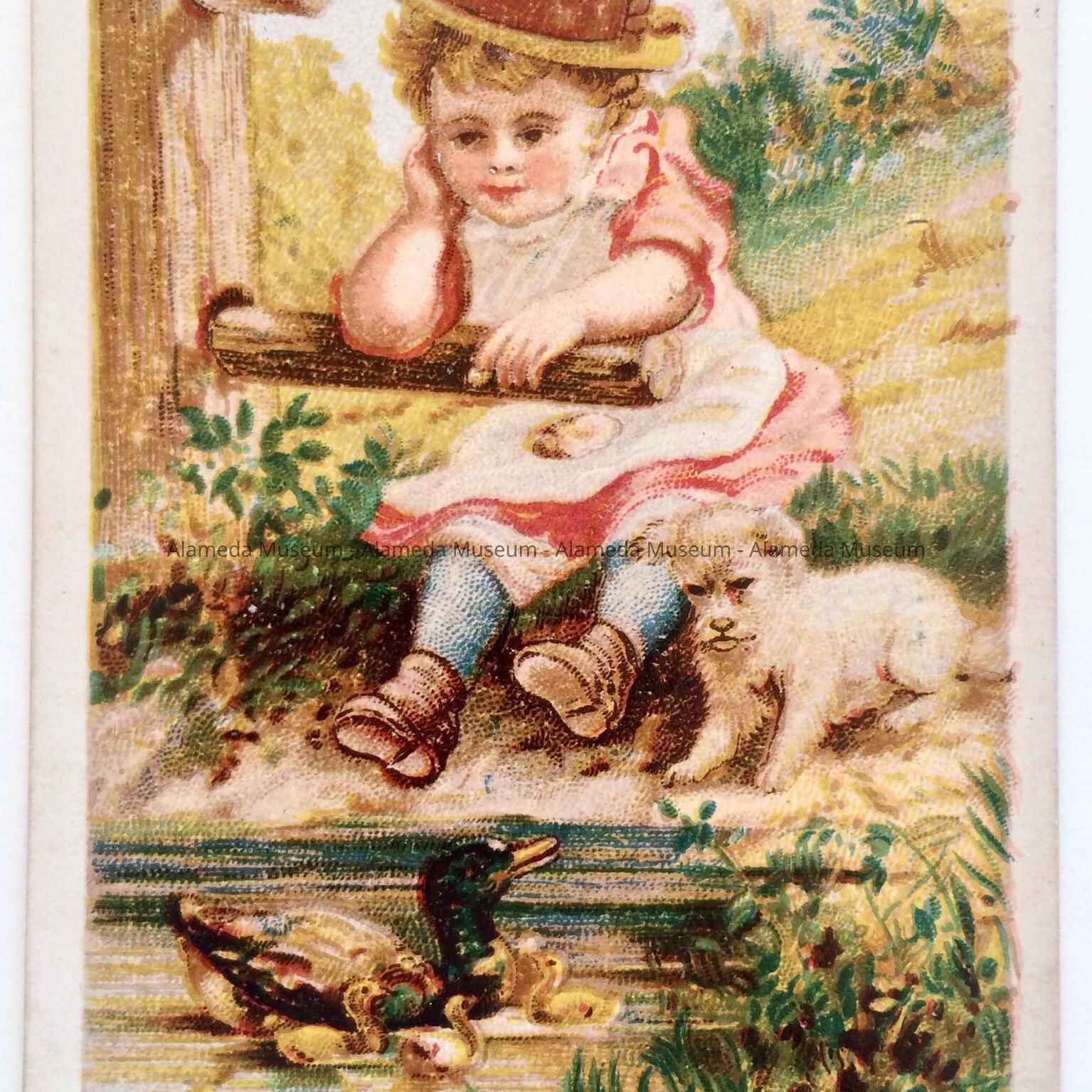 Greeting Card depicting a child and a puppy, 1882Entry/Object ID