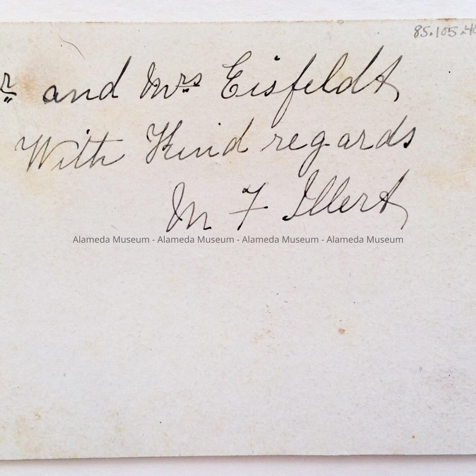 GREETING CARD GIVEN TO MR AND MRS WILLIAM THEODORE EISFELDT, EARLY RESIDENTS OF ALAMEDA, CA.