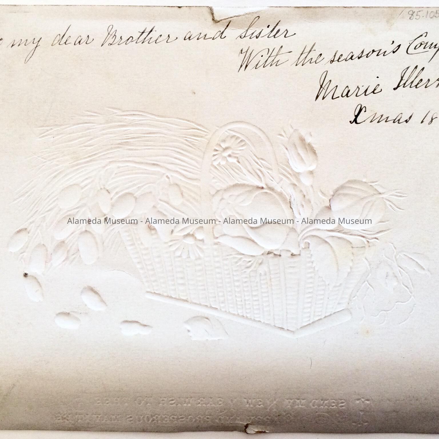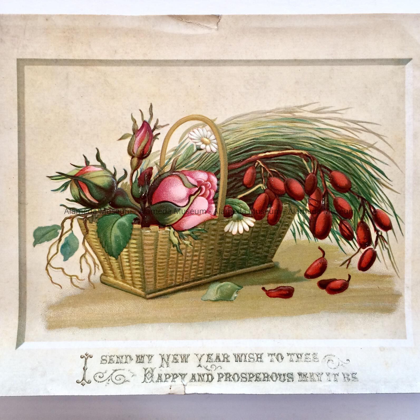 Greeting card with basket of flowers from the Eisfeldt family, 1883Entry/Object ID