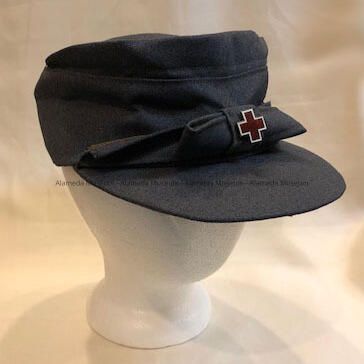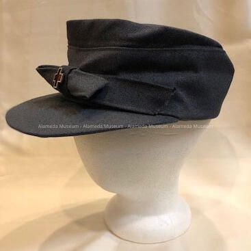 UNIFORM CAP WORN BY ALICE MCLAIN, ALAMEDA RESIDENT, WHO SERVED AS AN AMERICAN RED CROSS "GREY LADY" DURING WORLD WAR-II. ITEM WAS DONATED BY ALICE McLAIN'S DAUGHTER.