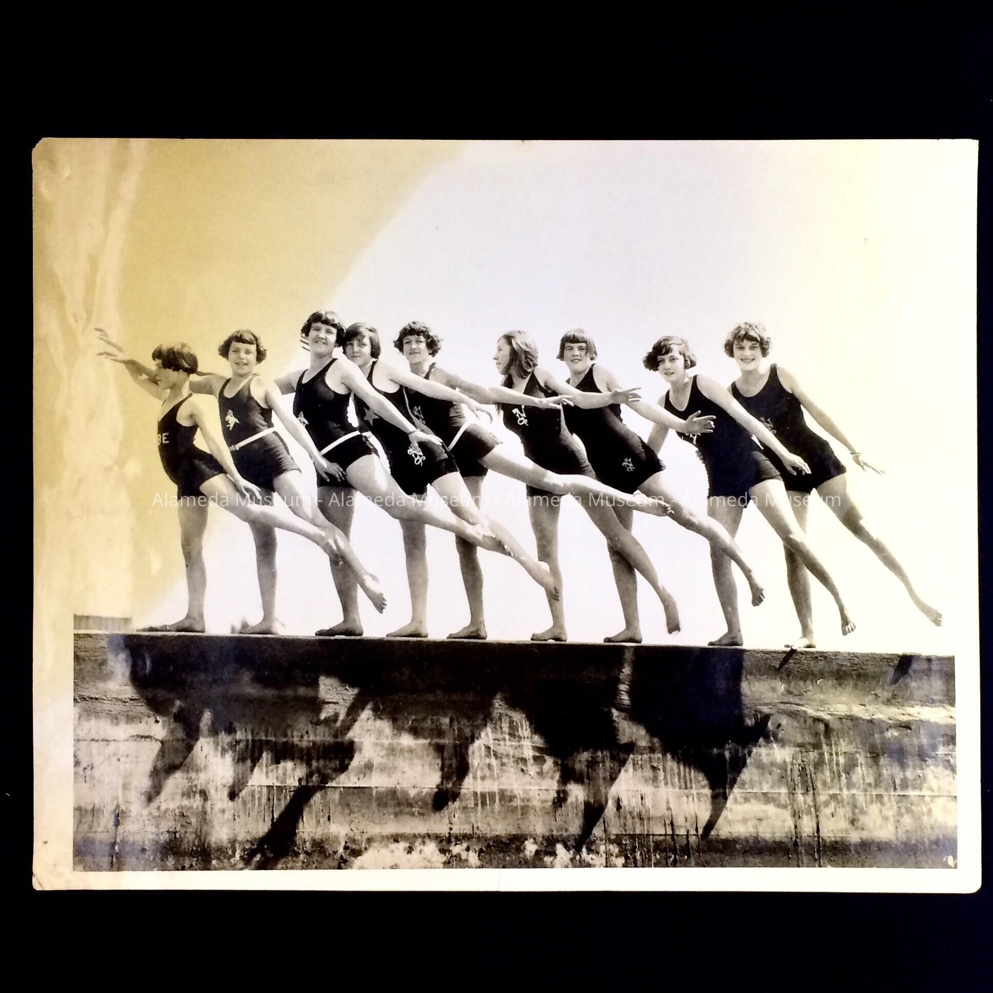 Group photo of nine young girls wearing bathing suits, c. 1920sEntry/Object ID