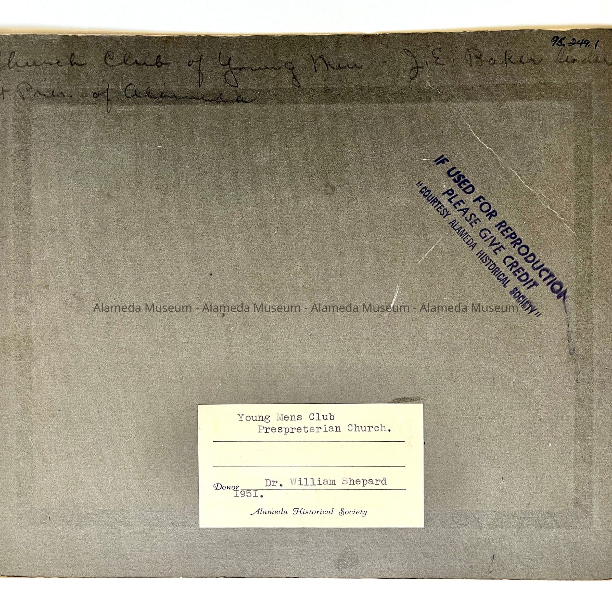 History of Object: Group portrait of the Young Men's Club. The names of the individuals shown are blue inked onto the image.