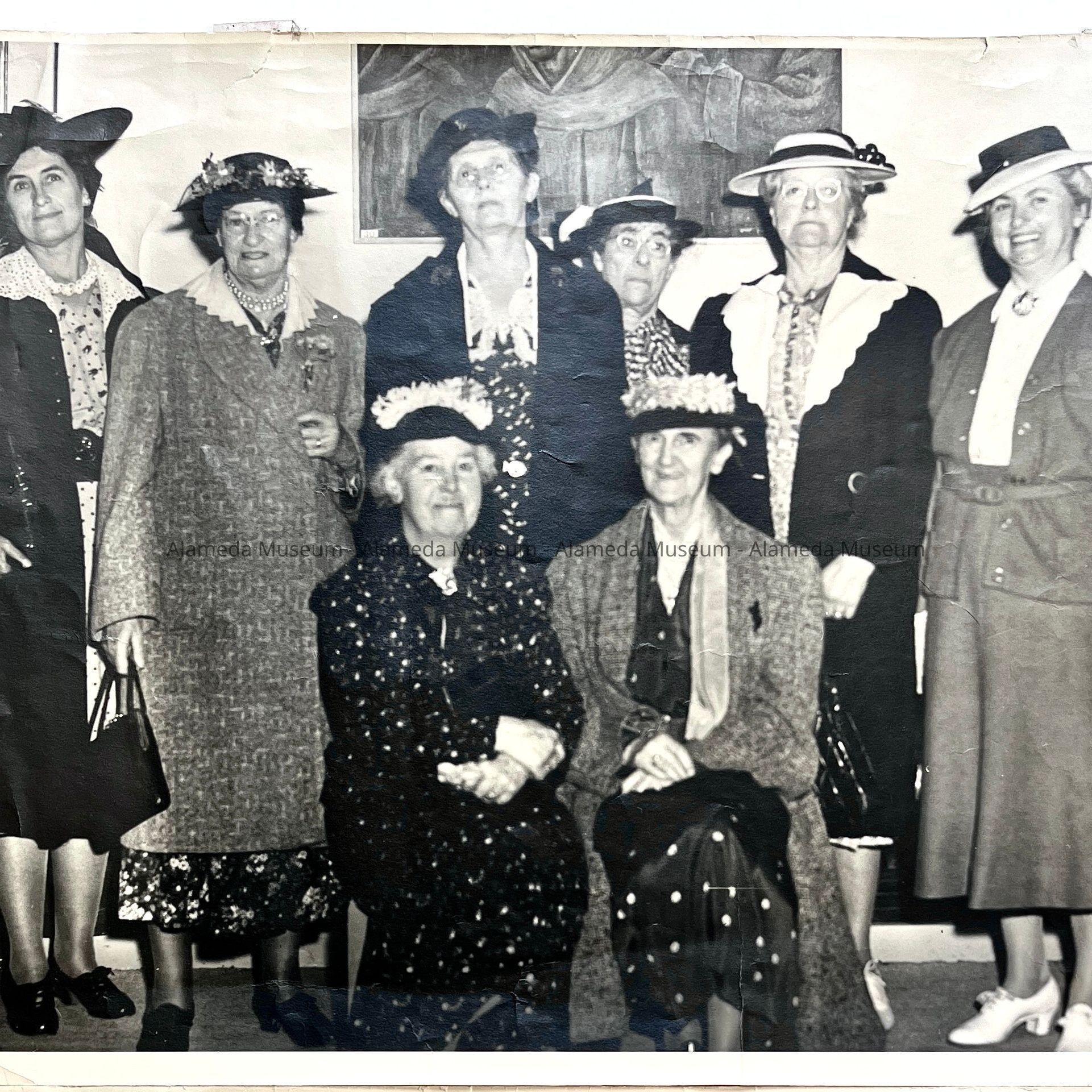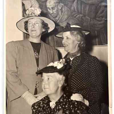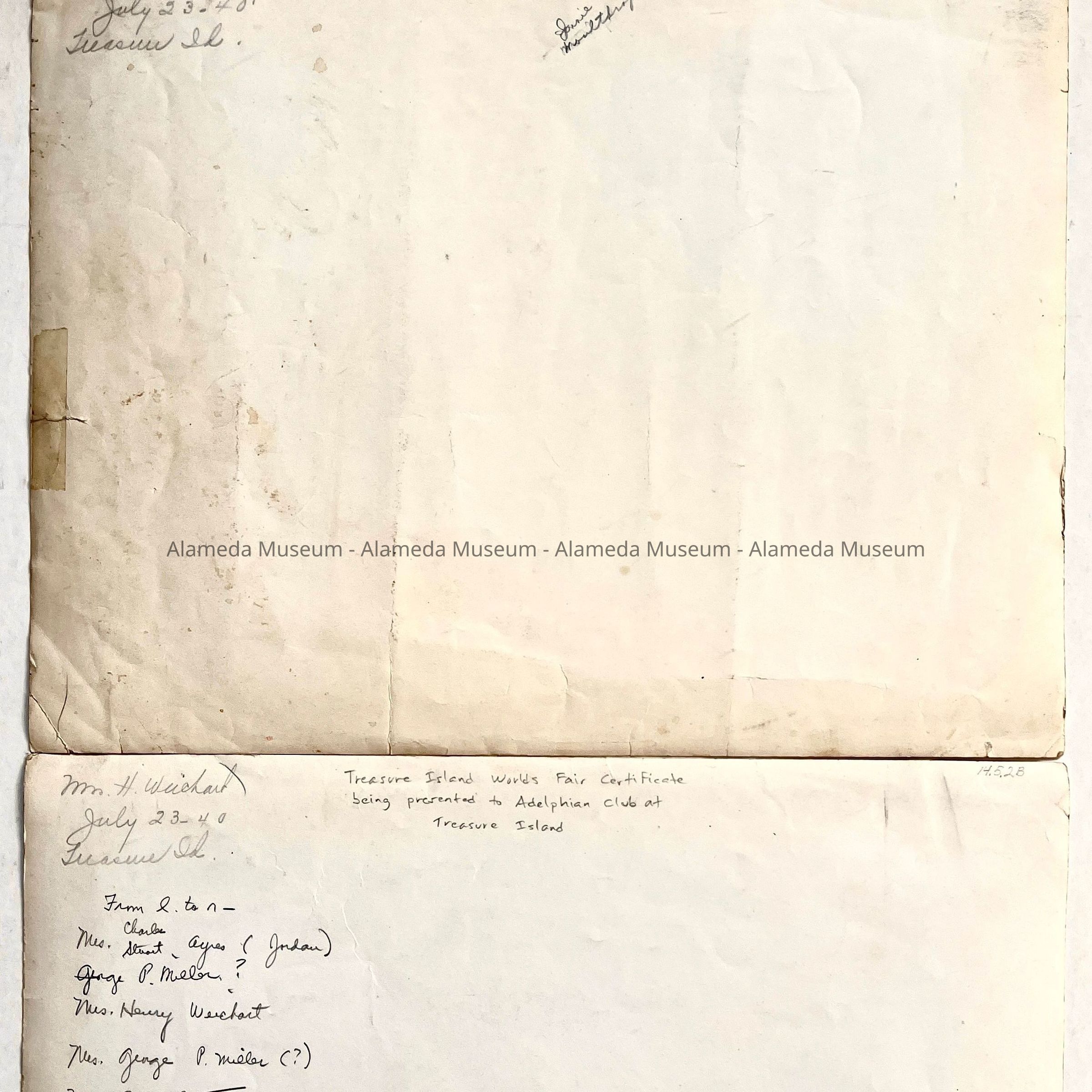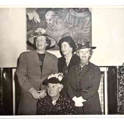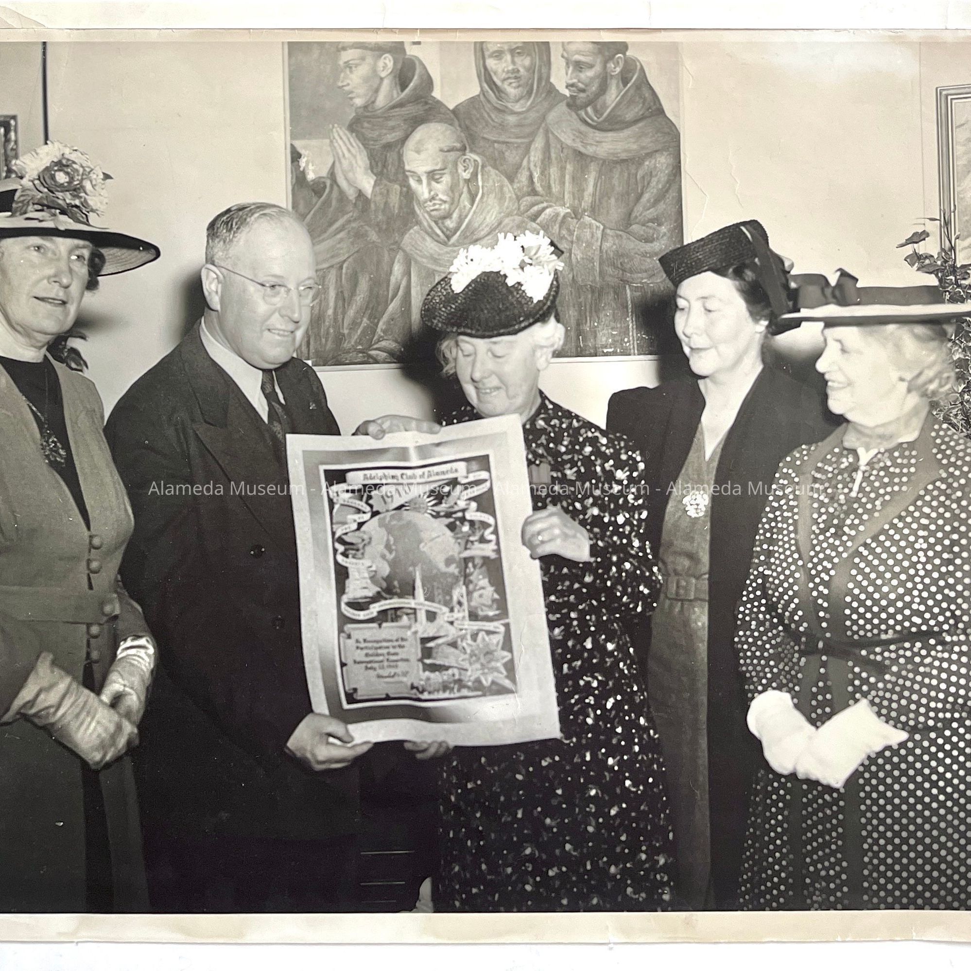 HISTORY OF OBJECTS: GROUP PHOTOS OF MEMBERS OF THE ADELPHIAN CLUB SHOWN RECEIVING A CERTIFICATE FOR PARTICIPATION AT THE 1940 WORLD'S FAIR, TREASURE ISLAND, SAN FRANCISCO.