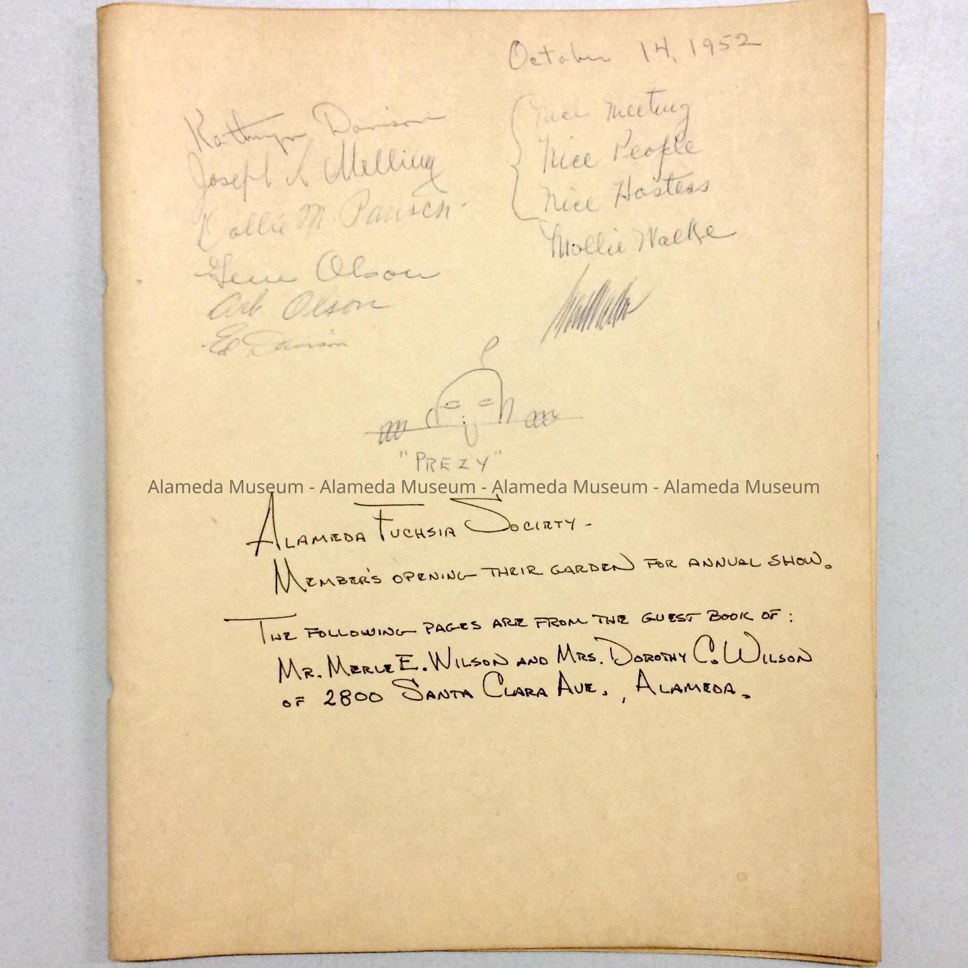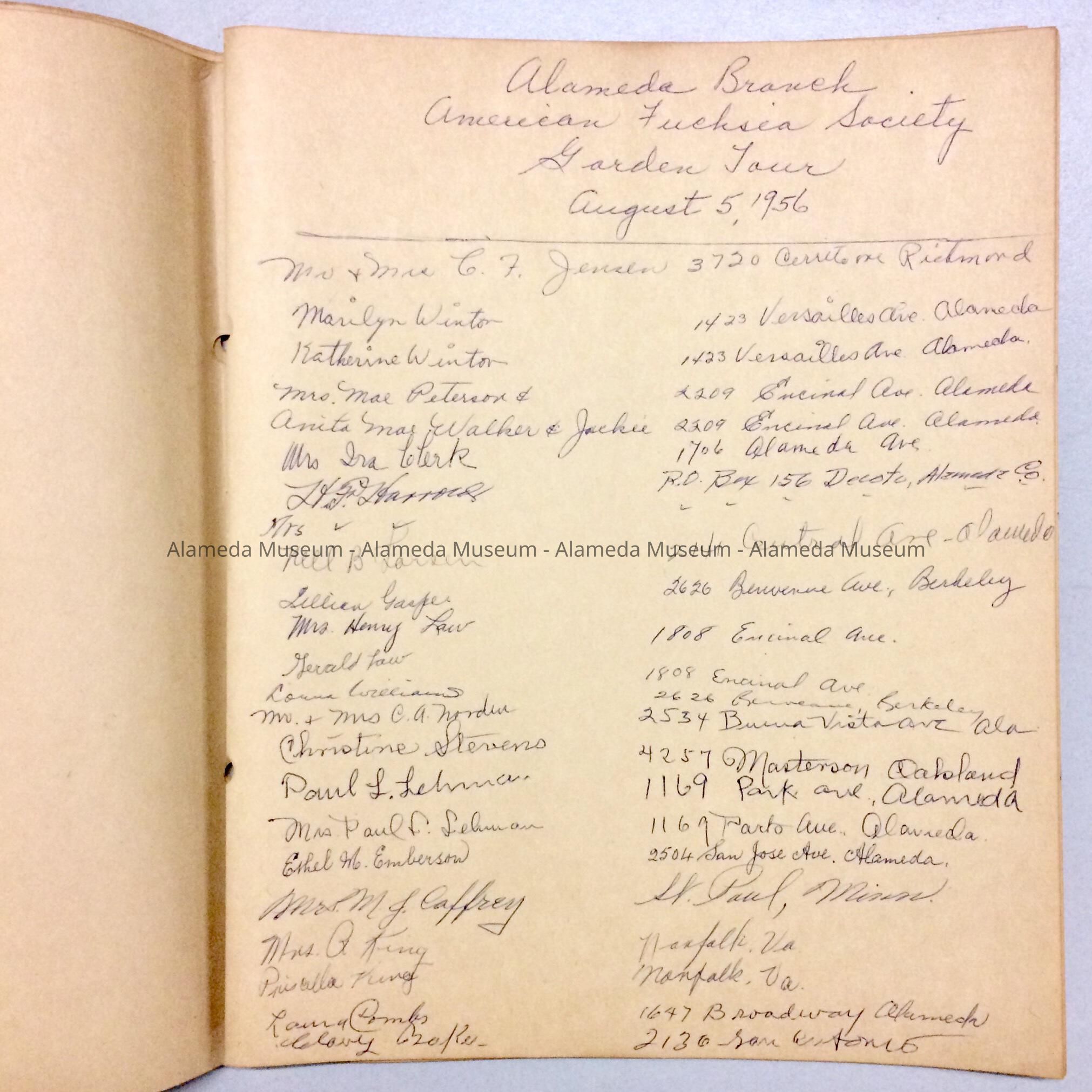 Guest book for the Alameda Branch of the American Fuchsia Society, 1952Entry/Object ID