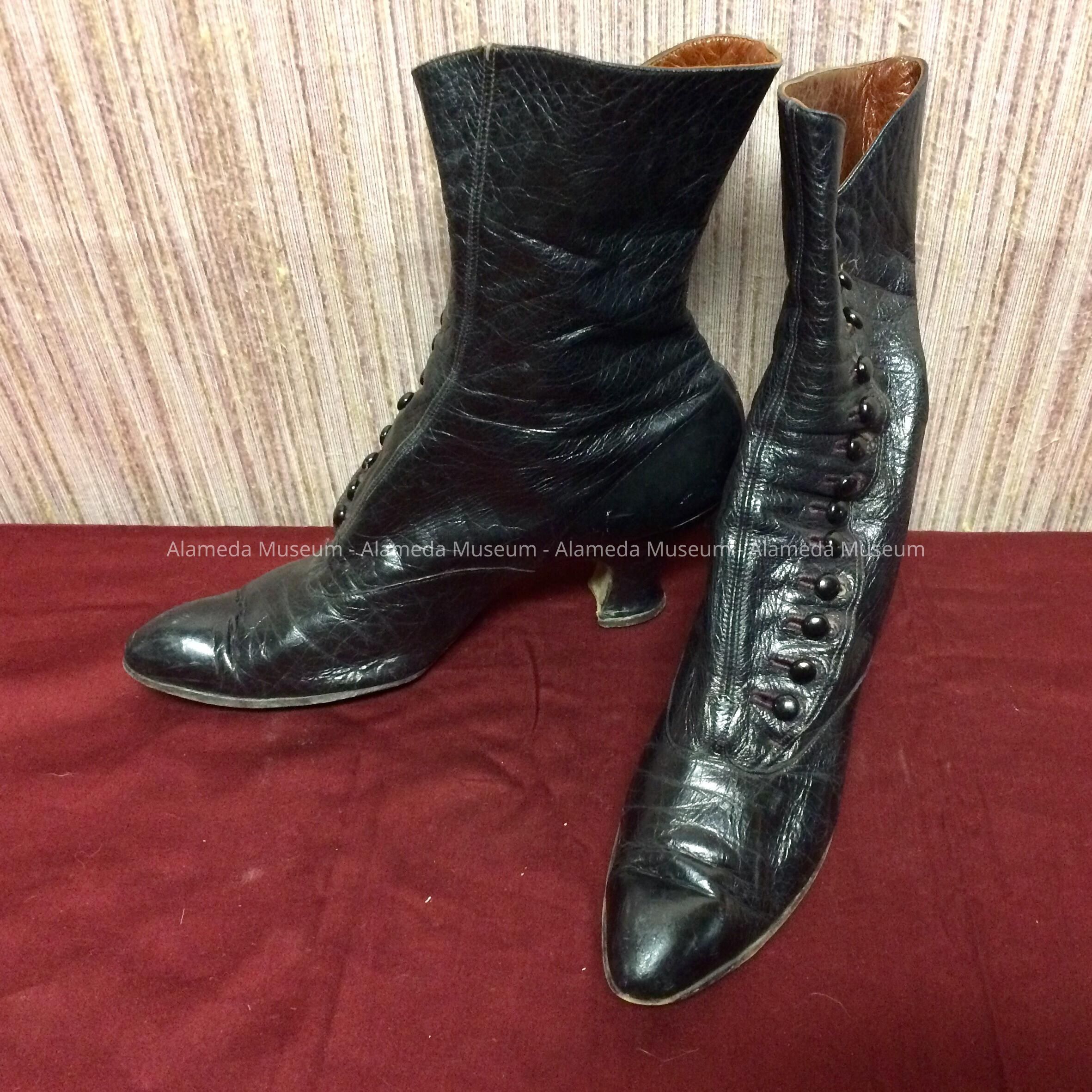 Gunmetal colored leather high buttoned shoes, c. 1908Entry/Object ID