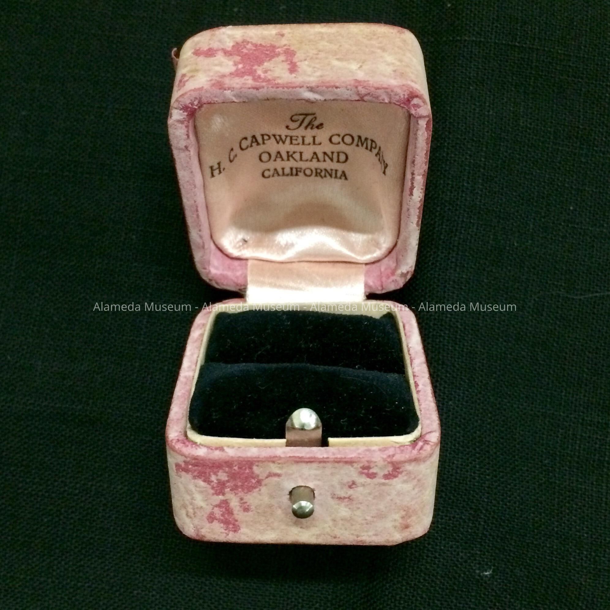 H. C. Capwell Co. paper covered ring box with satin lining and velvet label, c. 1920-1930Entry/Object ID