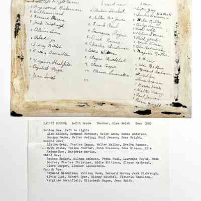 History of Object: Photograph Haight School, A-5th Grade, teacher Miss. Welch, 1920. Donor, Ruth White Fulton, a member of the class.