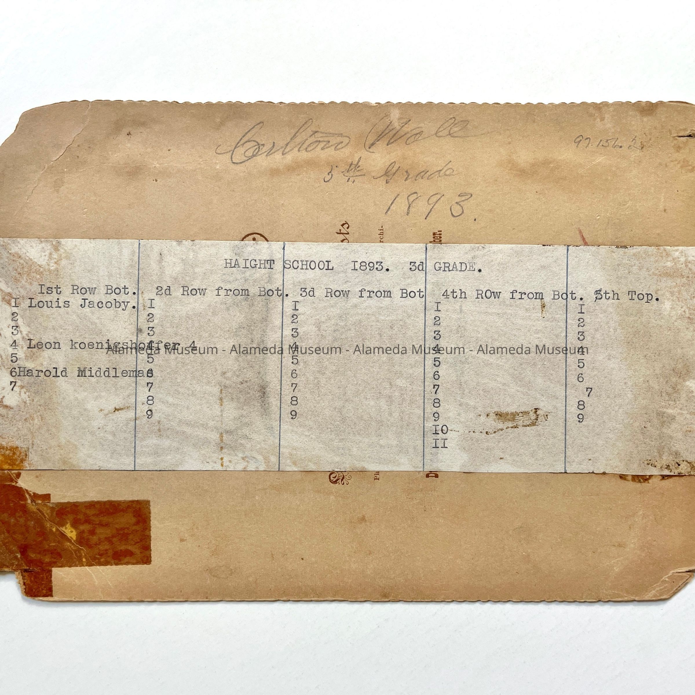 Haight School Fifth Grade Class Photo, 1893Entry/Object ID