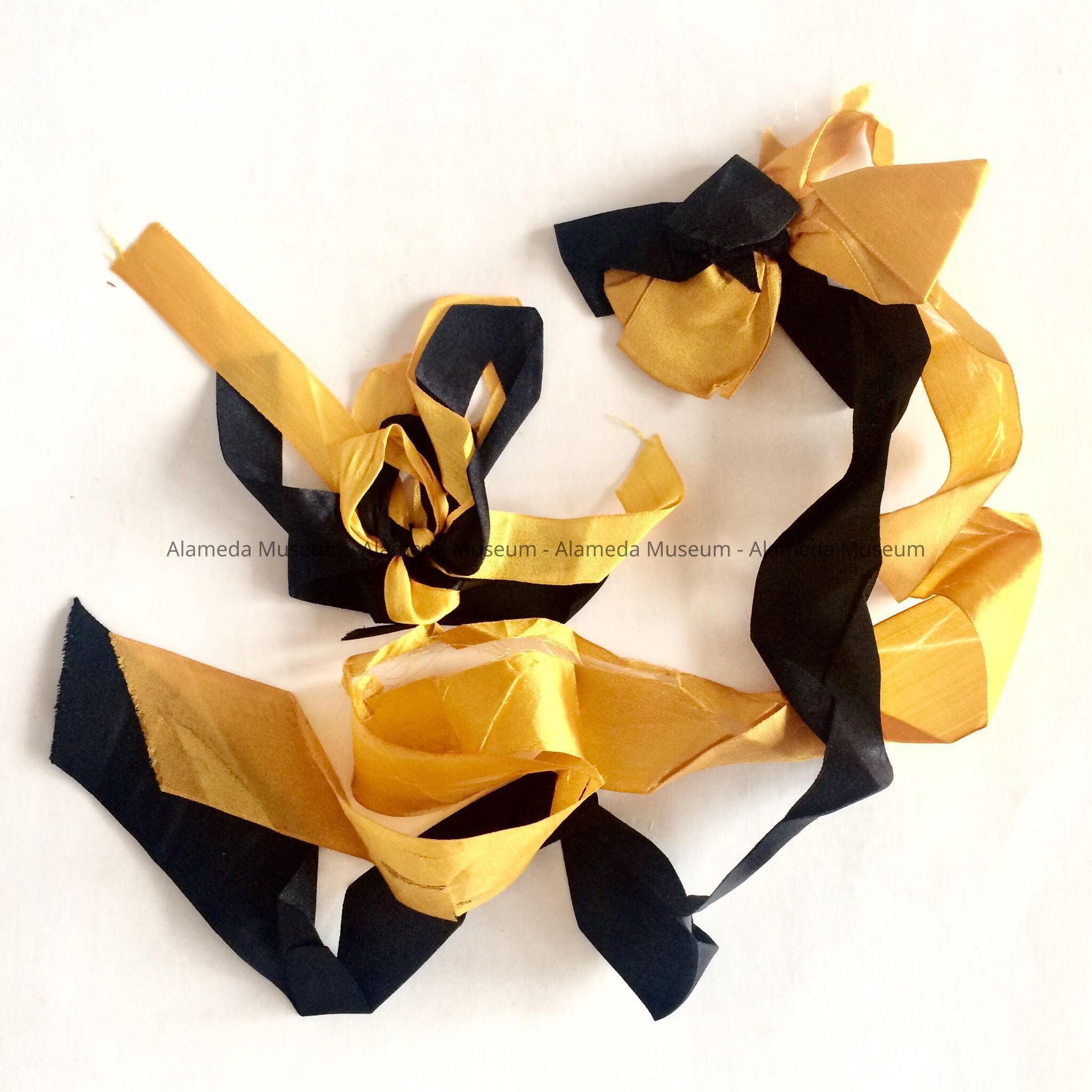 Description: Ribbon, silk, orange and black.