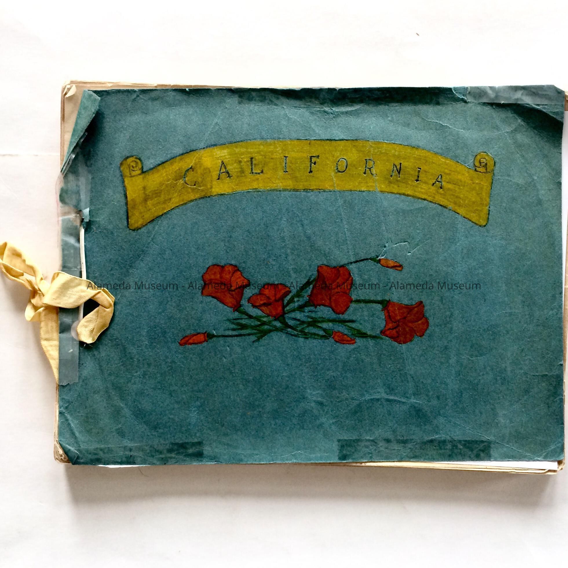 A SOFT-BOUND REPORT, WITH COVER OF BLUE-COLORED PAPER AND HAND-DRAWN COLORED POPPIES AND LOGO, "CALIFORNIA."