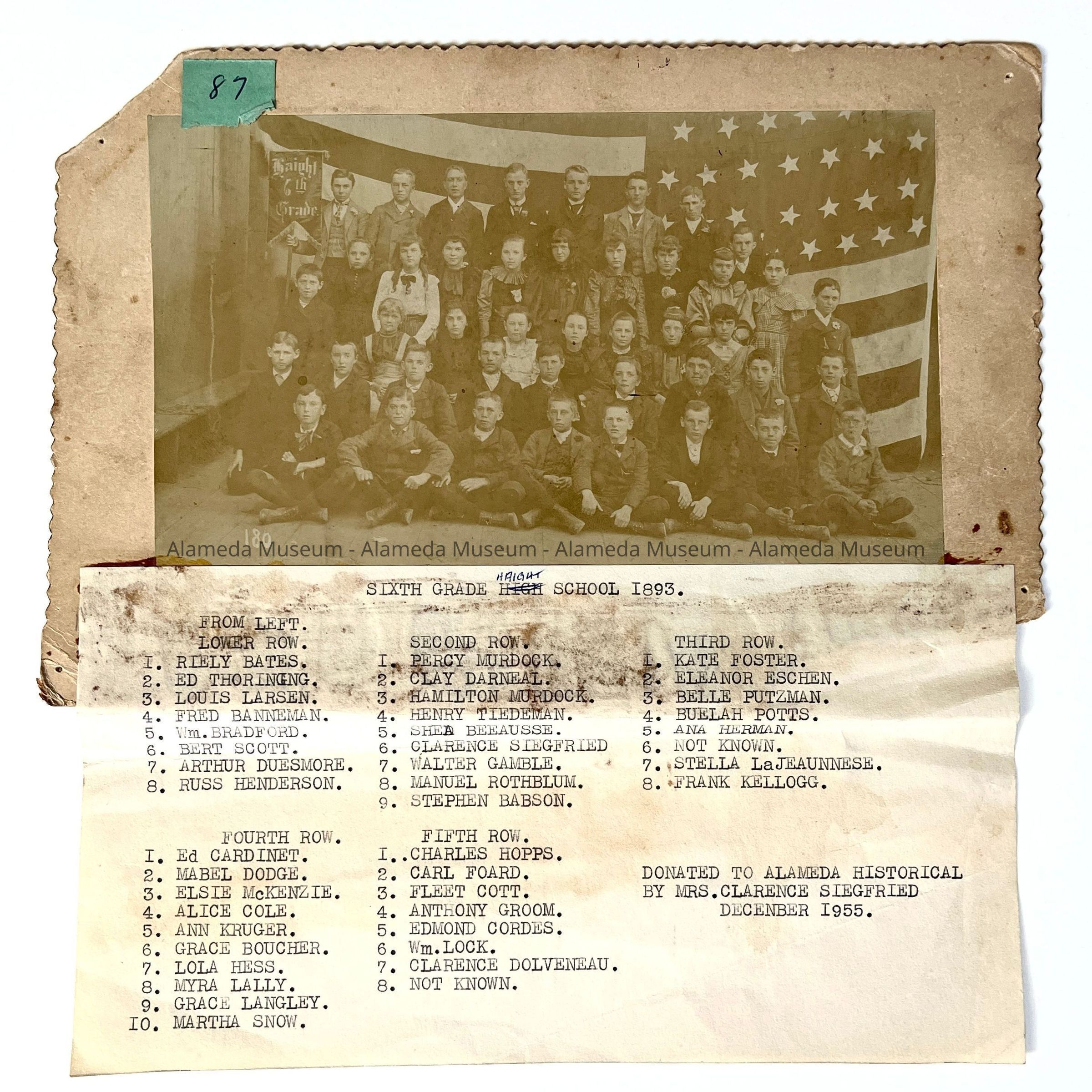 History of Object: Haight School Sixth Grade class photo, 1893.