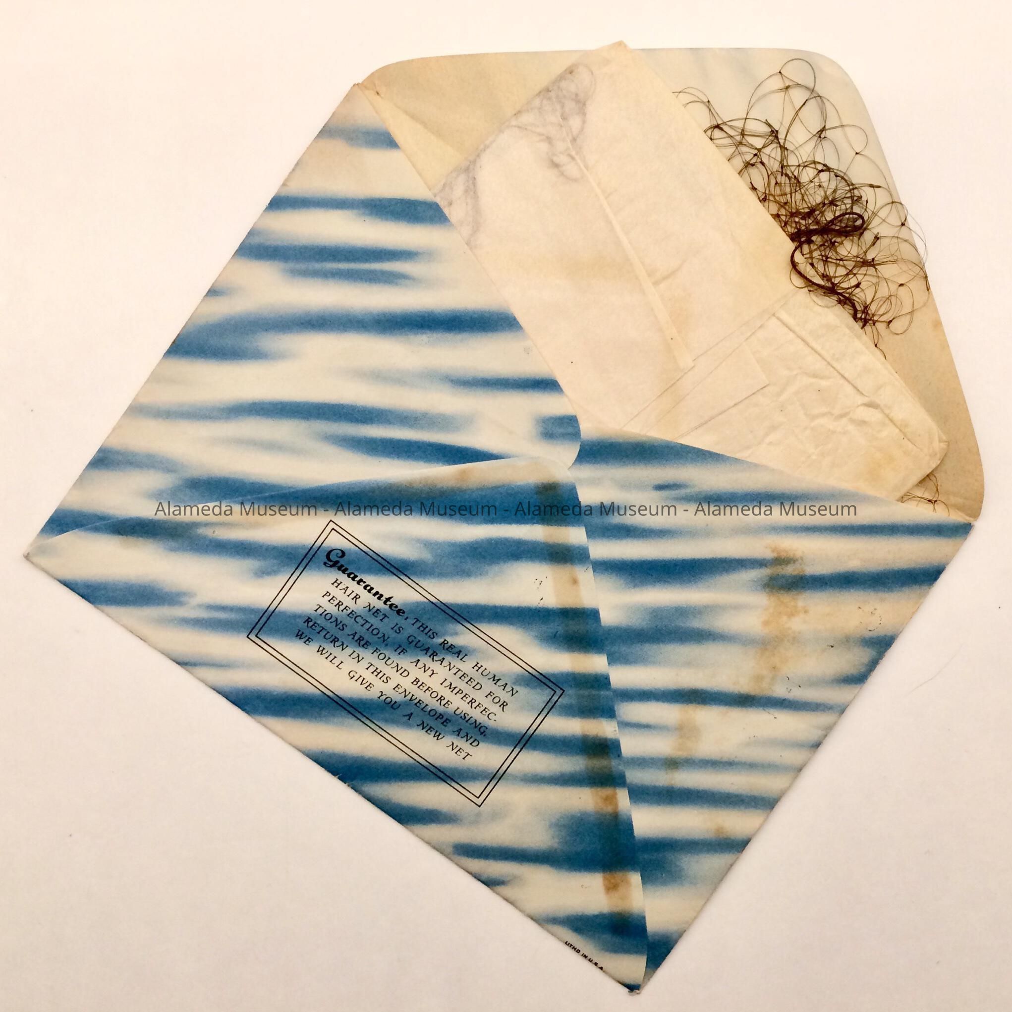 HISTORY OF OBJECT: A HAIR NET AND ENVELOPE THAT BELONGED TO HELGA FENN, LONGTIME ALAMEDA RESIDENT.
