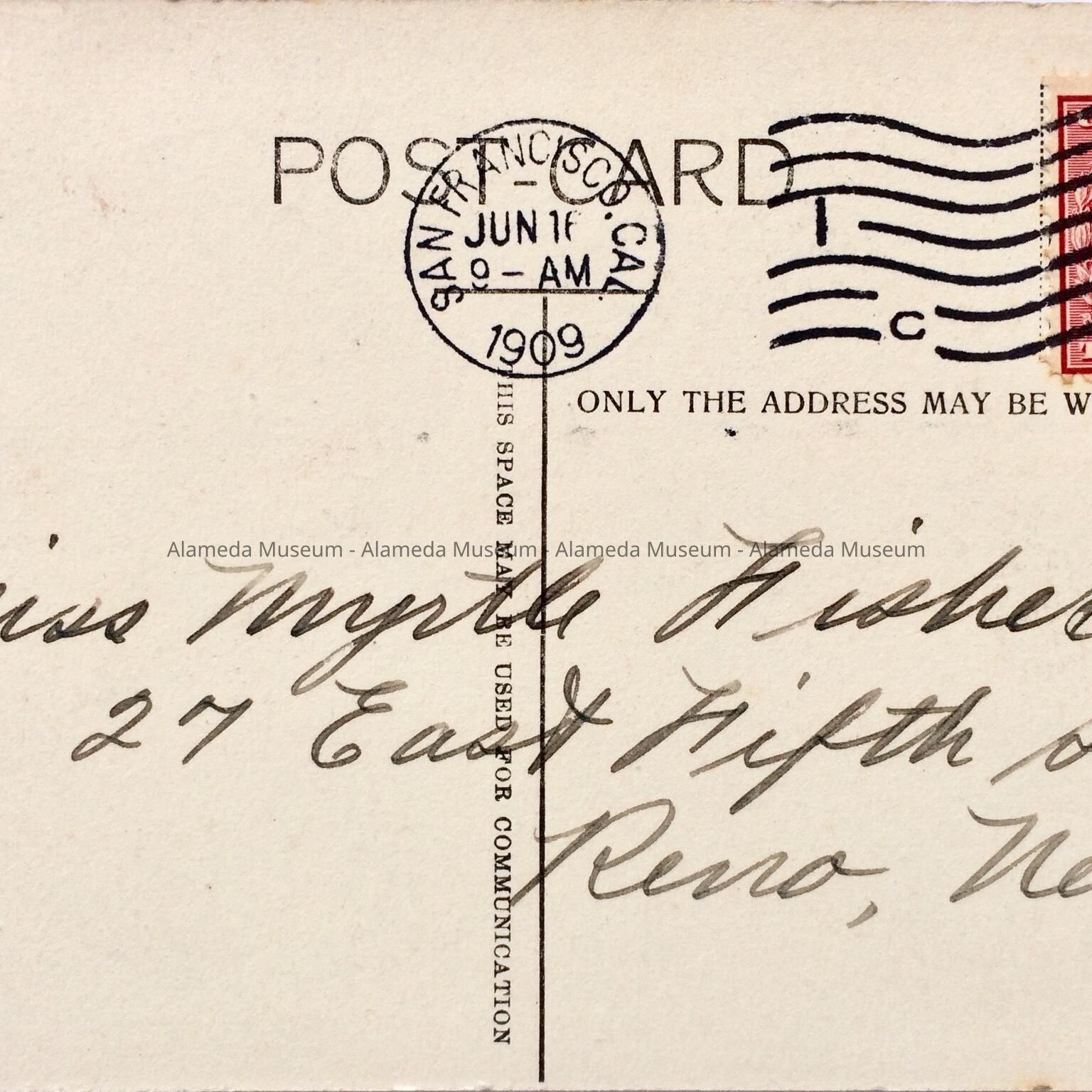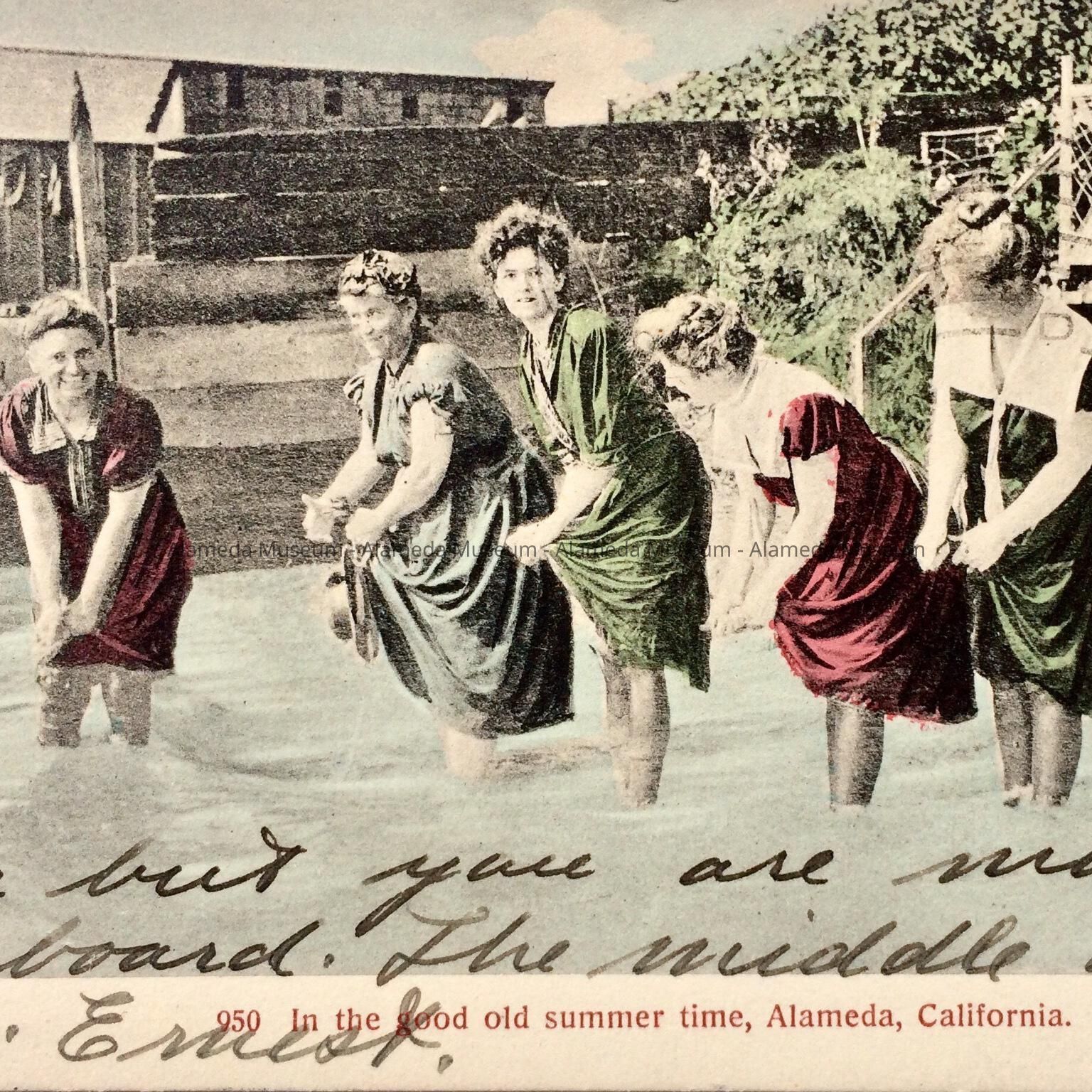 Postcard depicting bathing girls, entitled "In the good old summer time, Alameda, California". Postmarked 1909.