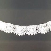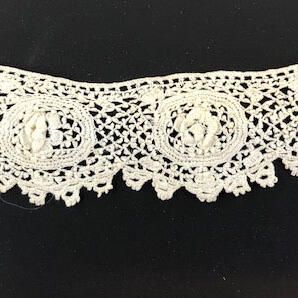 Description: Section of hand crocheted ecru colored lace, floral motif.