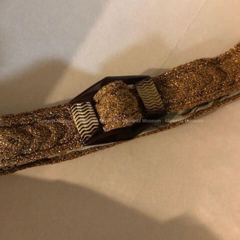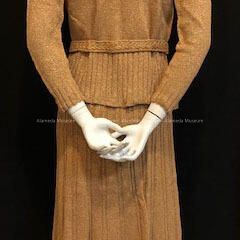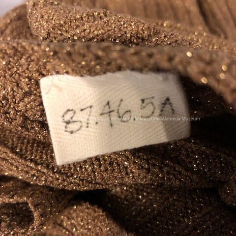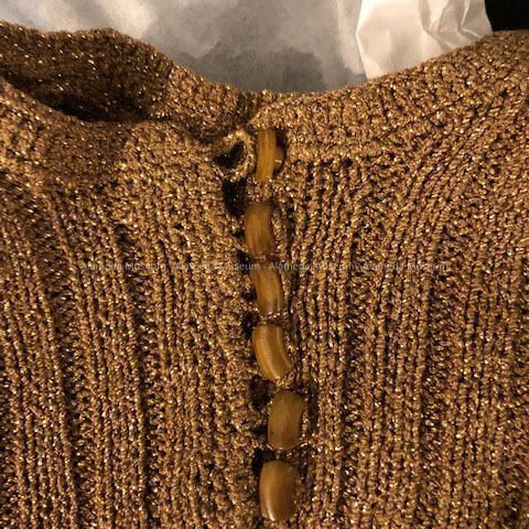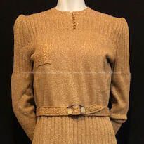 Hand-crocheted Suit of brown and gold variegated yarn, belt, and slip, c. 1940sEntry/Object ID