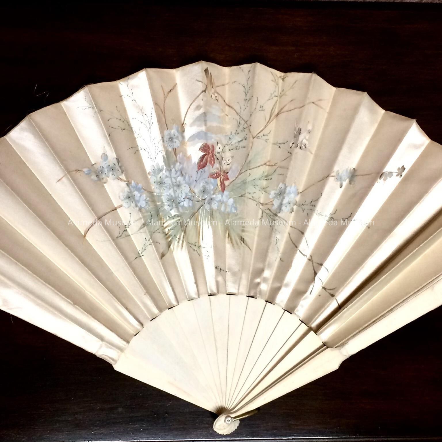 History of Object: Ball fan of Lura Smith, china painter, who came to Alameda in the 1890's from Chicago, Ill. She died in 1912.