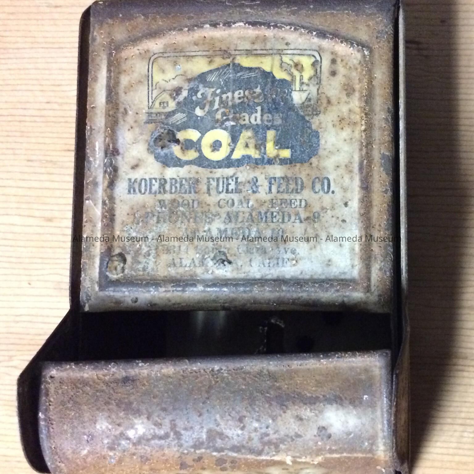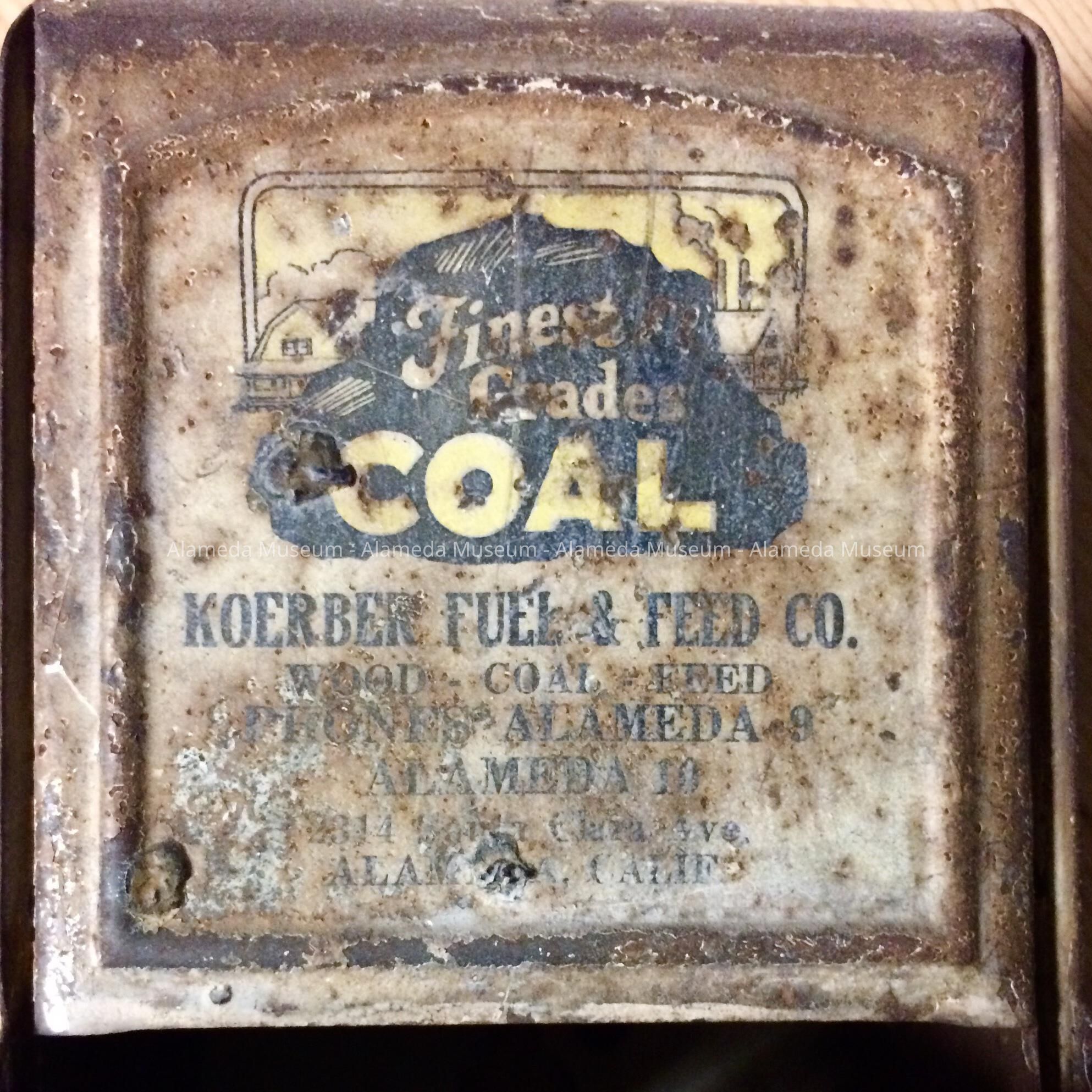 History of Object: Advertising match box (hanging) from the Koerber Fuel & Feed Co., 2314 Santa Clara Avenue, Alameda, Calif.
