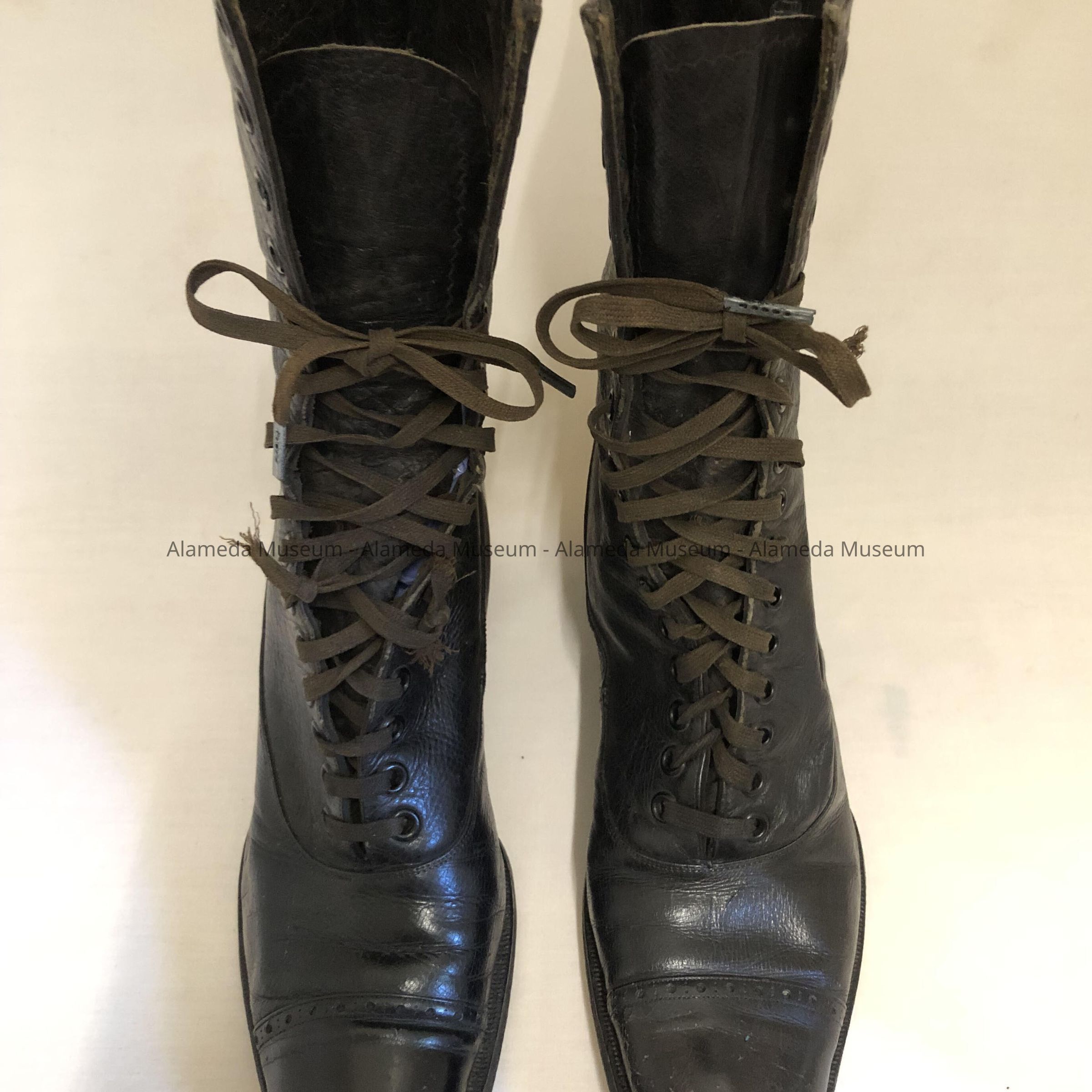 History of Object: Walking shoes of Harriet Holmes Haslett (wife of Samuel M.) old-time resident of Alameda, California.