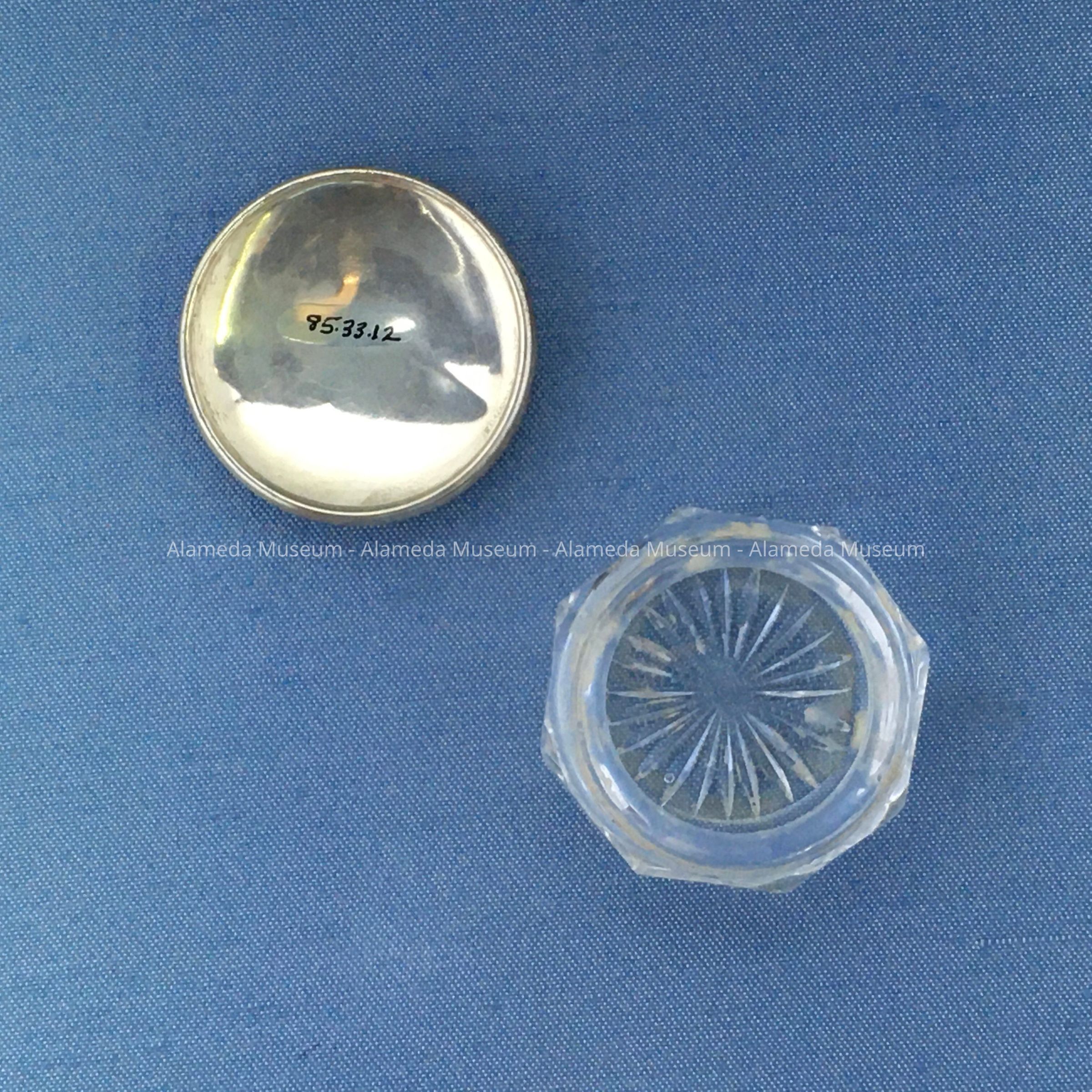 Haslett family Circular Glass Shreve & Co. pin box with Silver lid, early 1900sEntry/Object ID