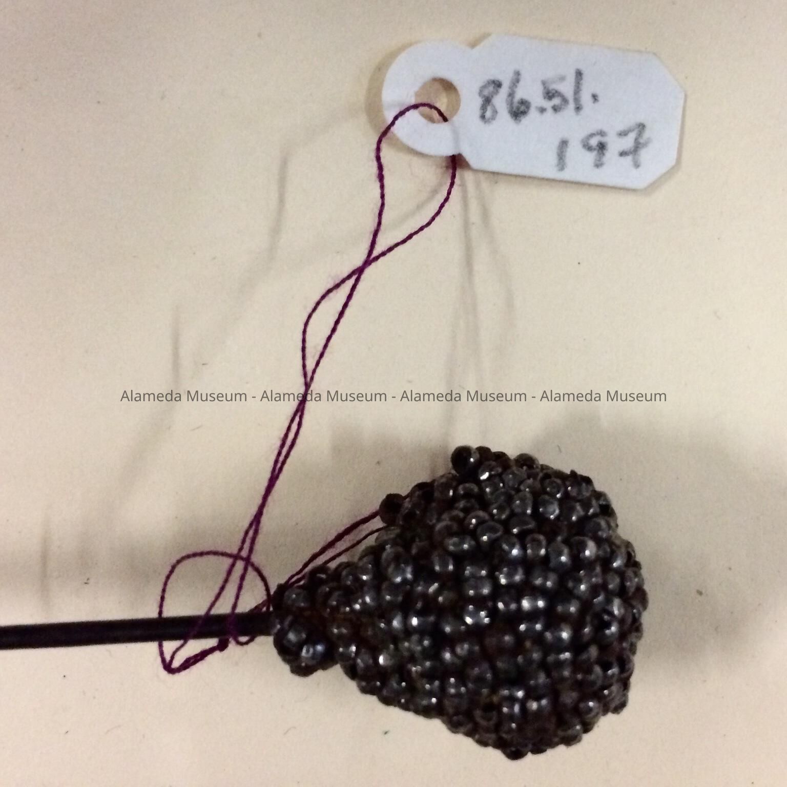 Hat pin with head of steel cut beads, early 1900sEntry/Object ID