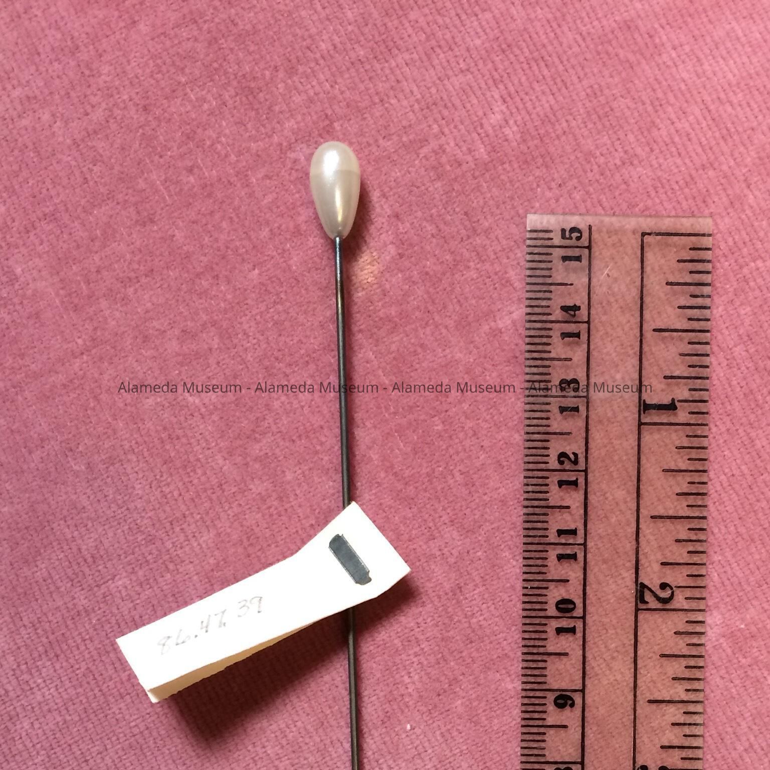 Hat pin with immitation pearl head, early 1900sEntry/Object ID