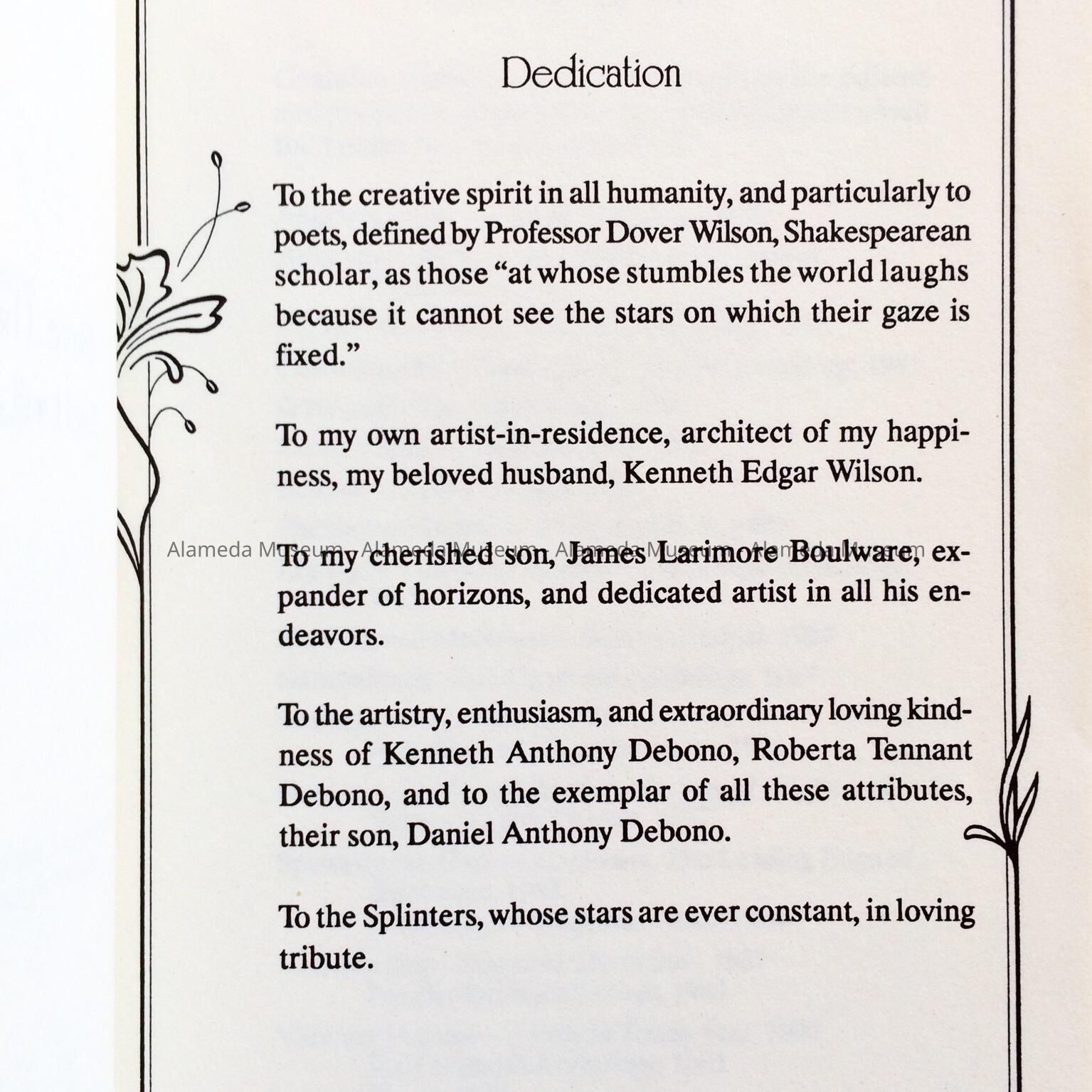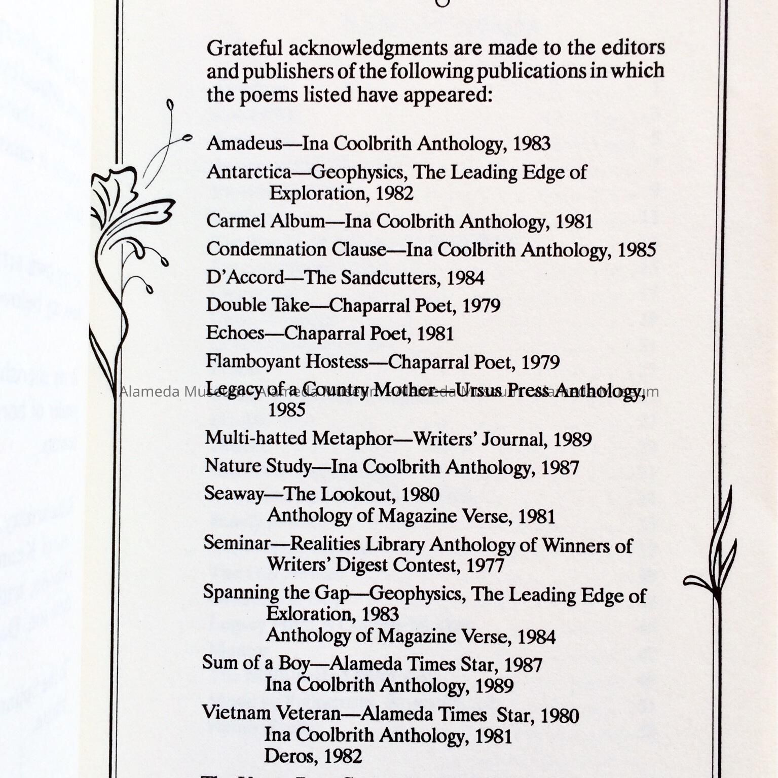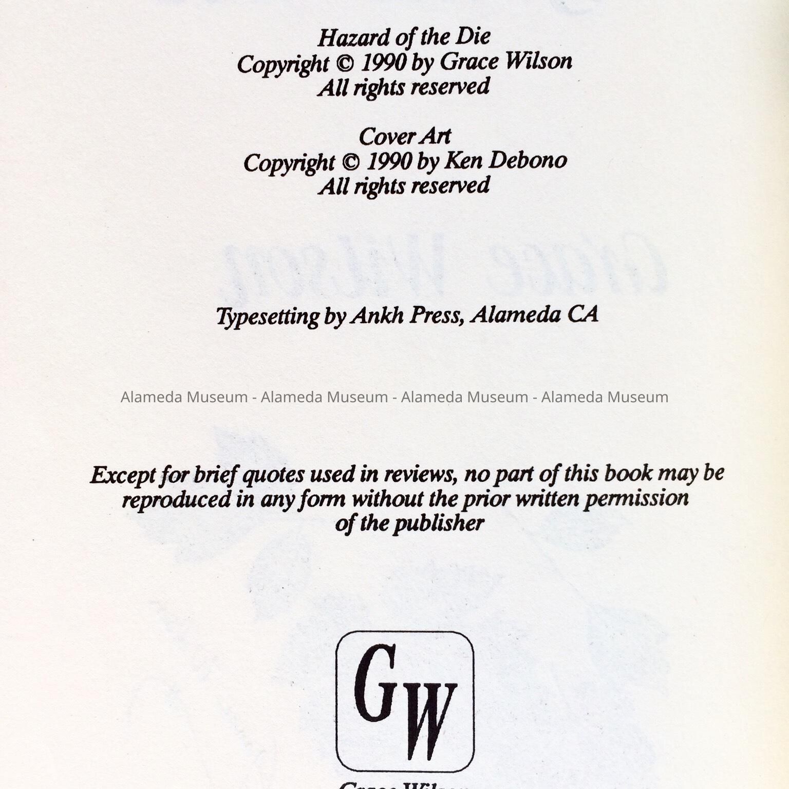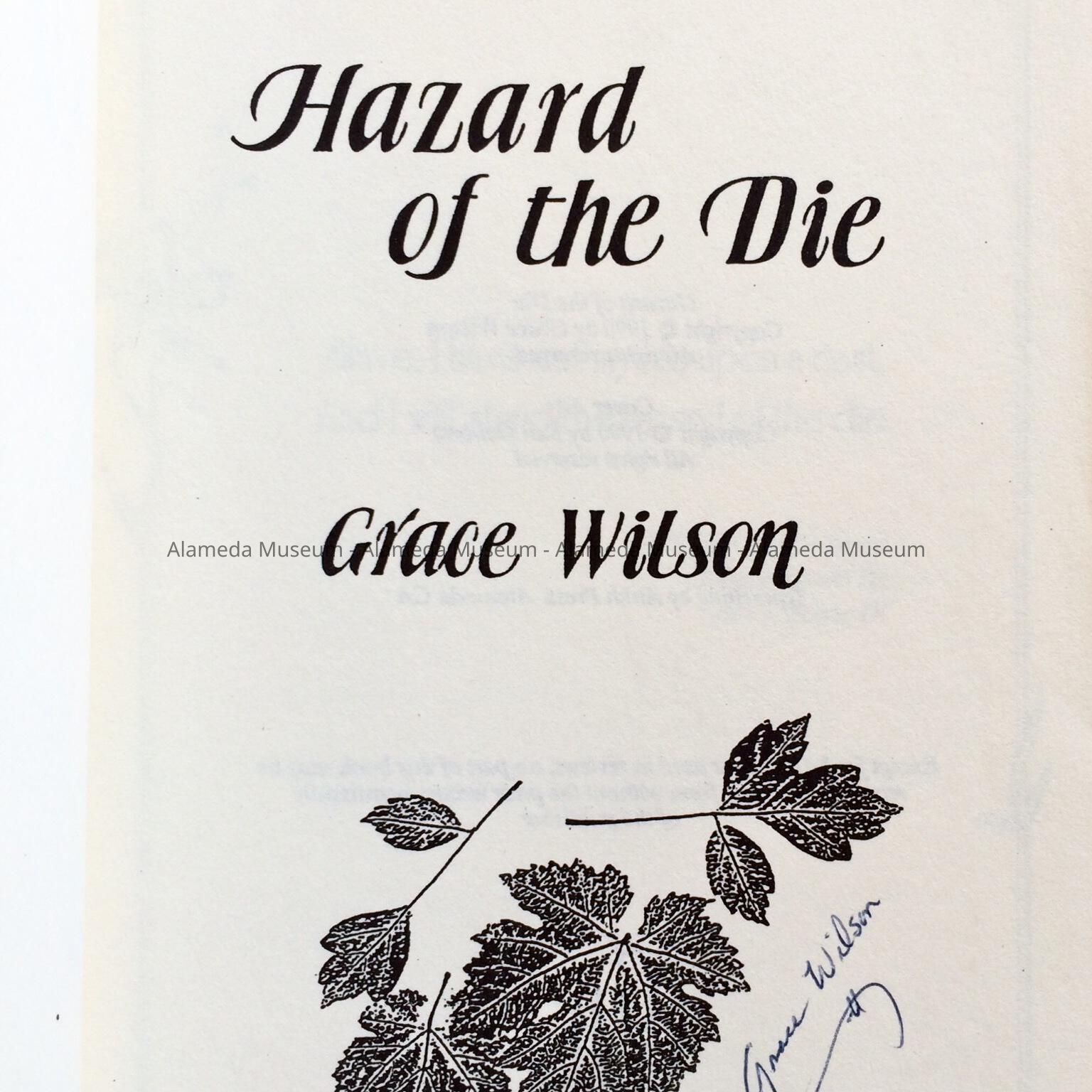 HISTORY OF OBJECT: A BOOK OF POETRY BY GRACE WILSON TITLED, "HAZARD OF THE DIE," COPYRIGHTED IN 1996; TYPESETTING BY ANKH PRESS, ALAMEDA, CALIFORNIA. GRACE WILSON RESIDED AT 2029 N. OTIS DRIVE, ALAMEDA, CA.