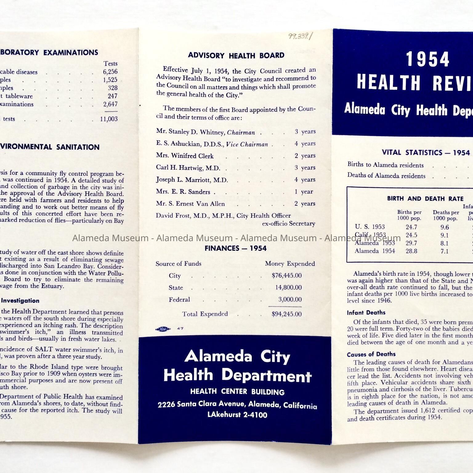 History of Object: Pamphlet covering vital statistics issued by the Alameda City Health Department in 1954.