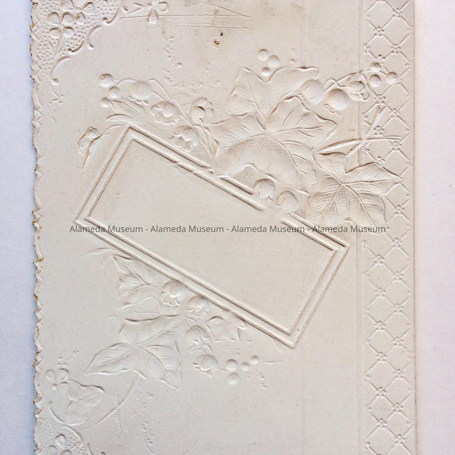 History of Object: Greeting card that originally belonged to Charlotte Deas, member of an old time Alameda family.