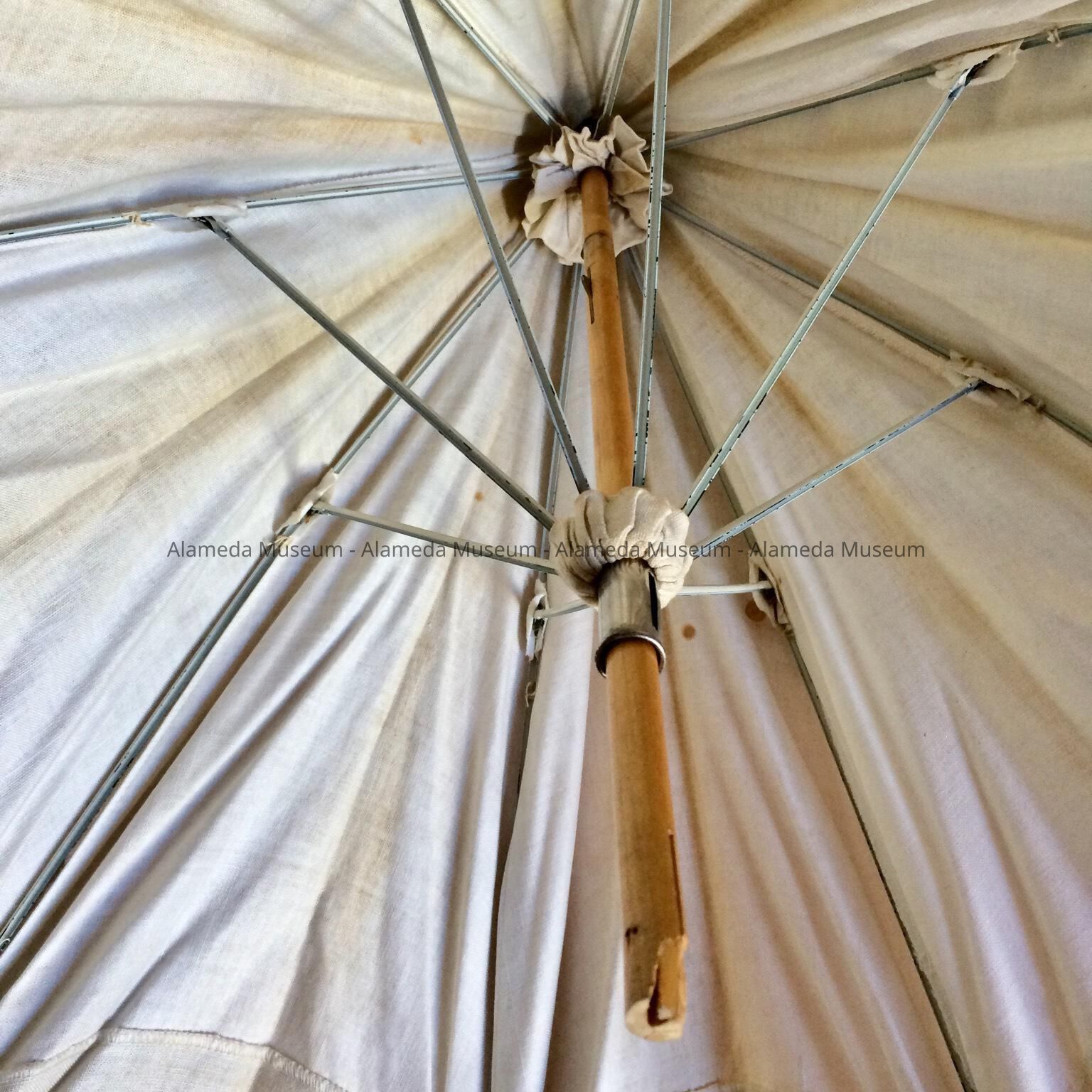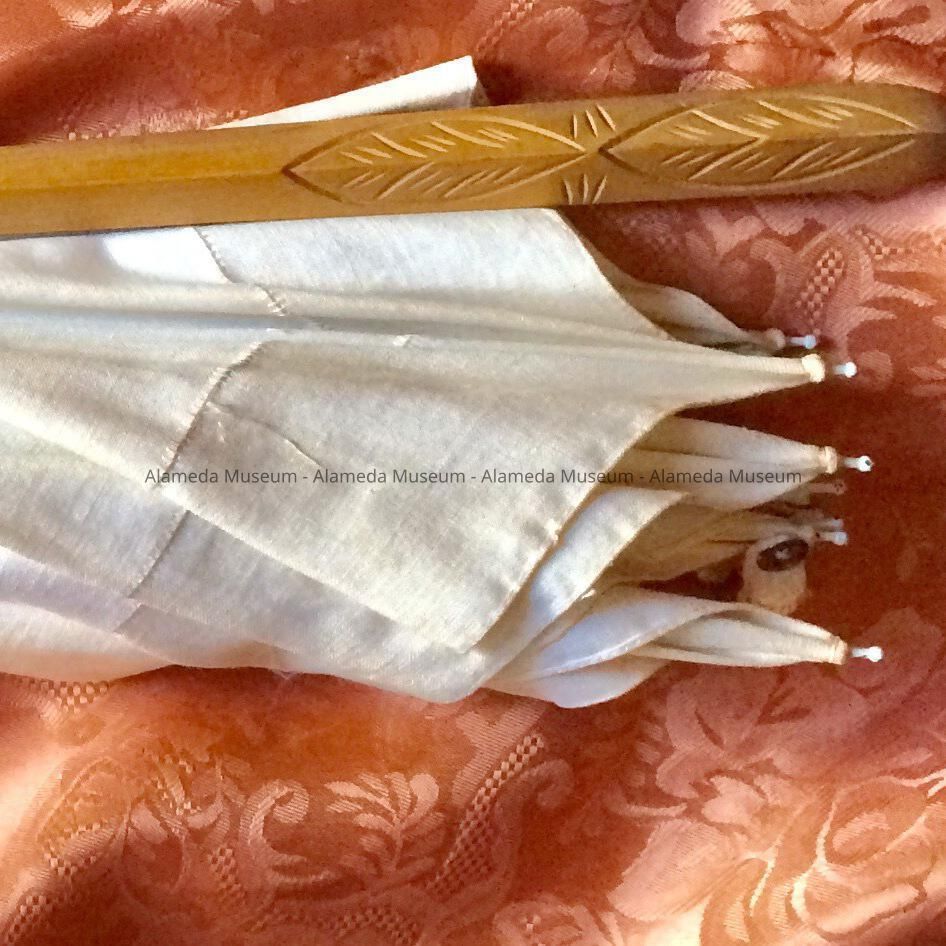Heavy White Linen Parasol with carved maple handle, c. 1913Entry/Object ID