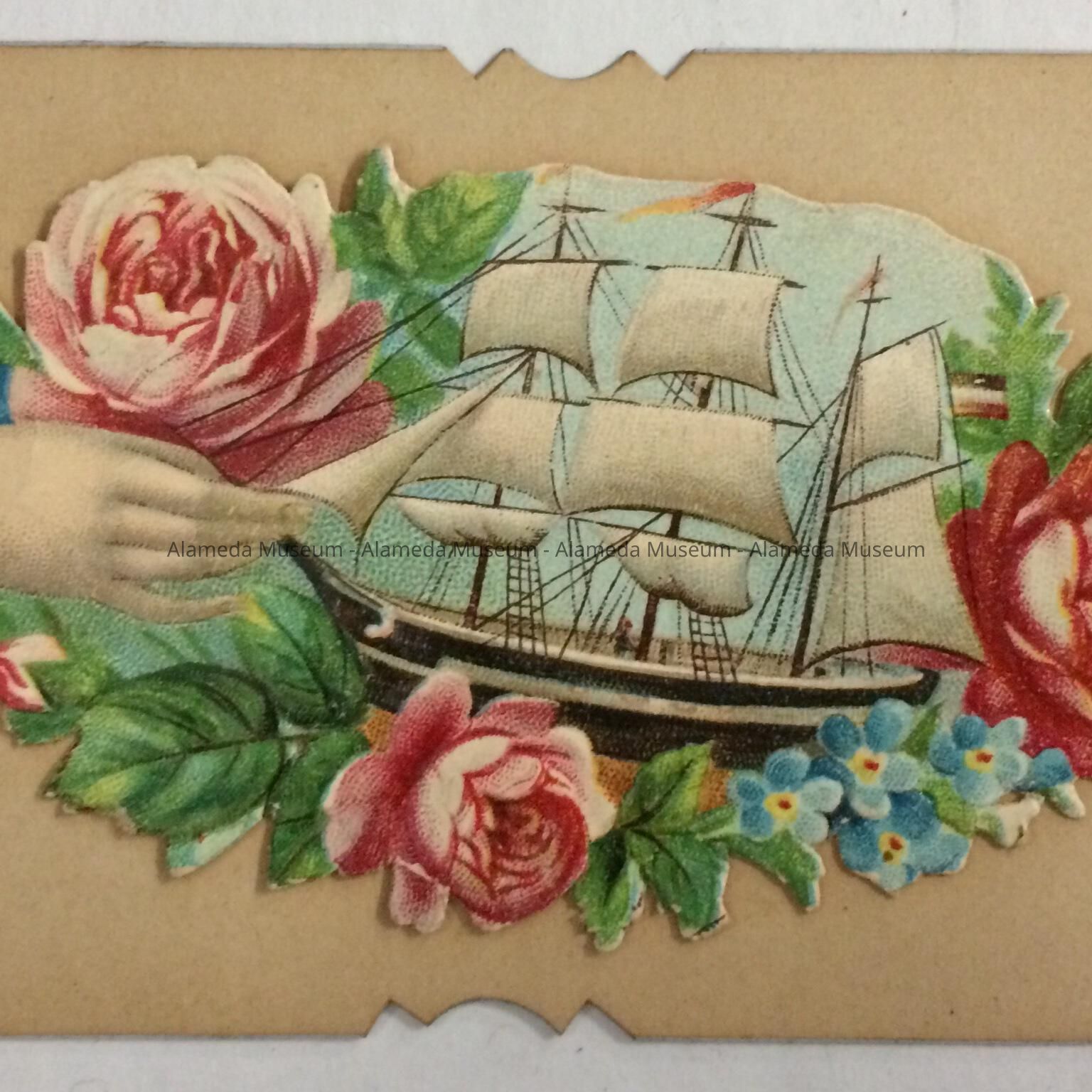 CALLING CARD PRINTED ON HEAVY PAPER STOCK, WITH LITHOGRAPHIC DIE-CUT FLAP WHICH, WHEN LIFTED, REVEALS NAME OF INDIVIDUAL.