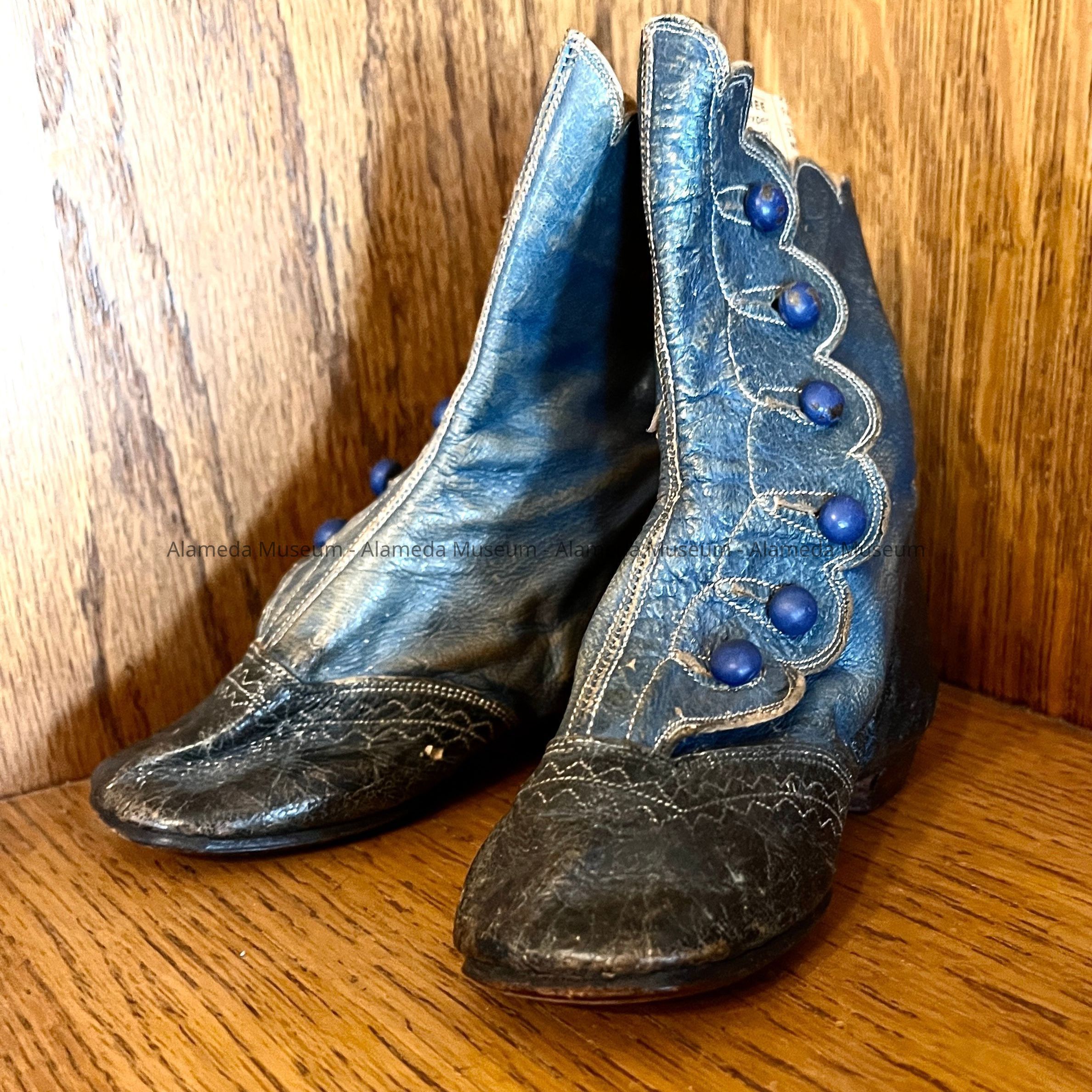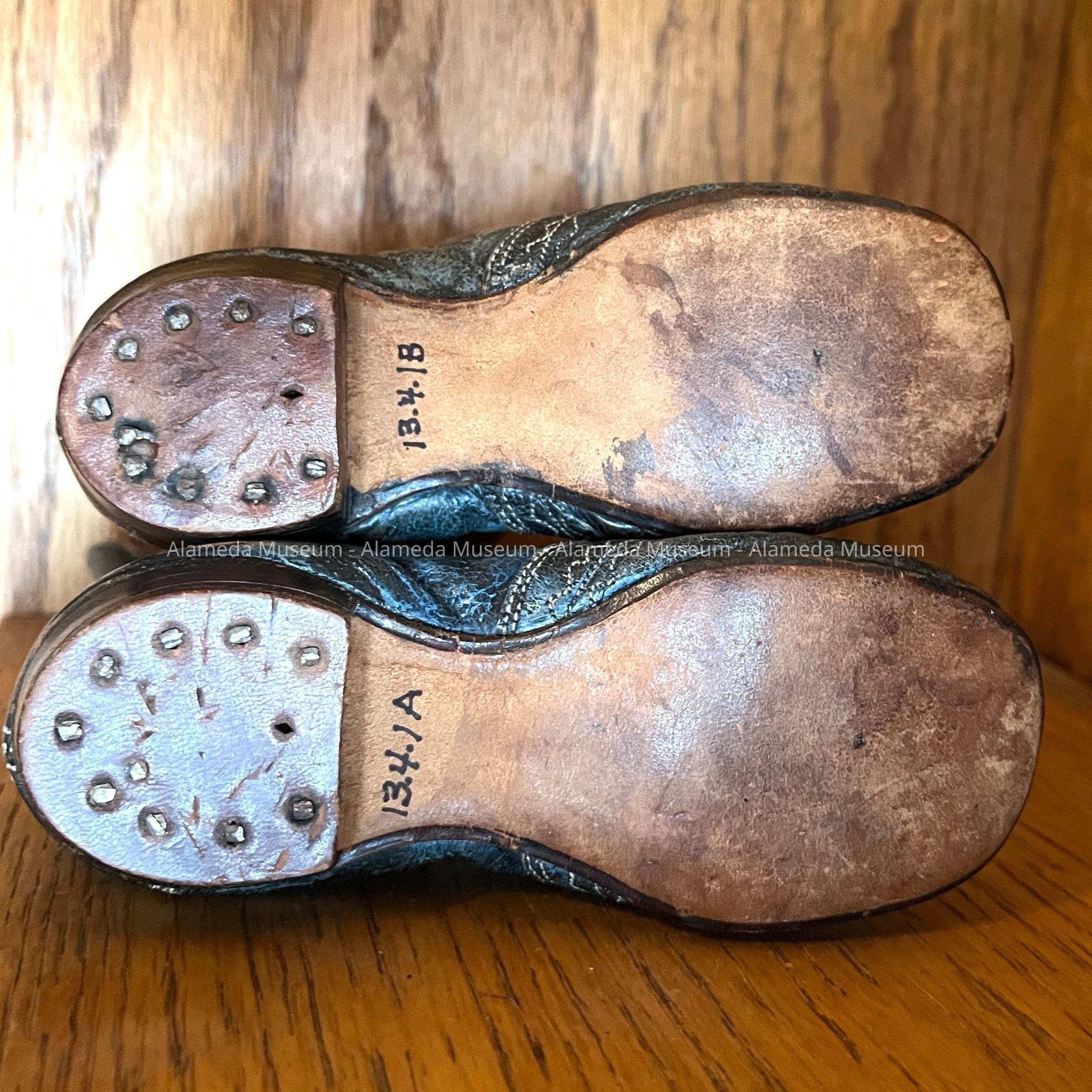 History of Object: Baby shoes worn by the late Thelma Rutherford Lanzit, who died in Alameda on April 13, 1985 at age 84. She was a 59-year resident of Alameda who had settled here in 1926. She was the mother of Jerome Lanzit, the past treasurer of the Alameda Museum.