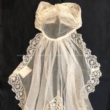 High necked jabot style collar of white voiling or net material trimmed in machine lace.
