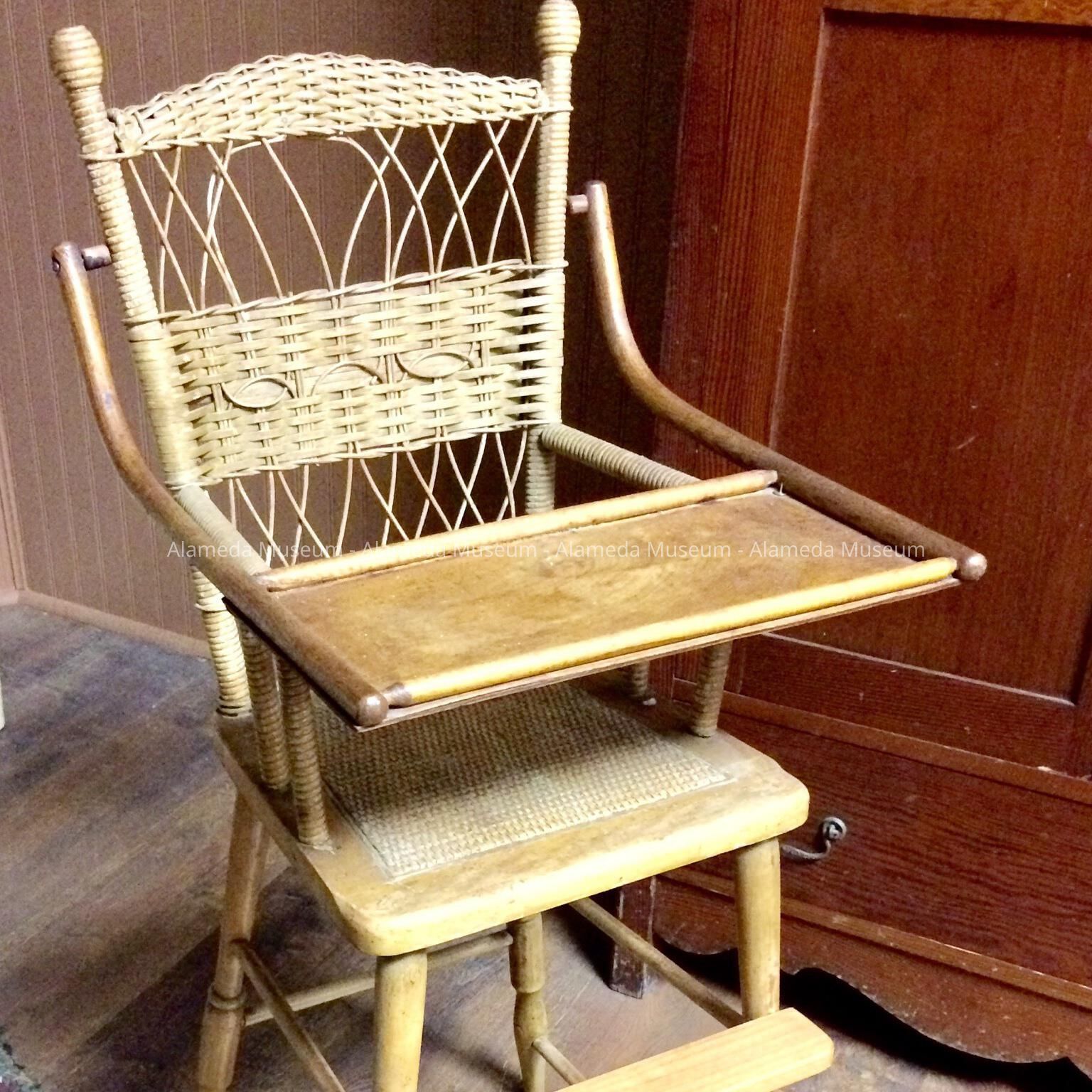 Highchair with woven wicker back and hinged serving tray, c. 1895-1896Entry/Object ID