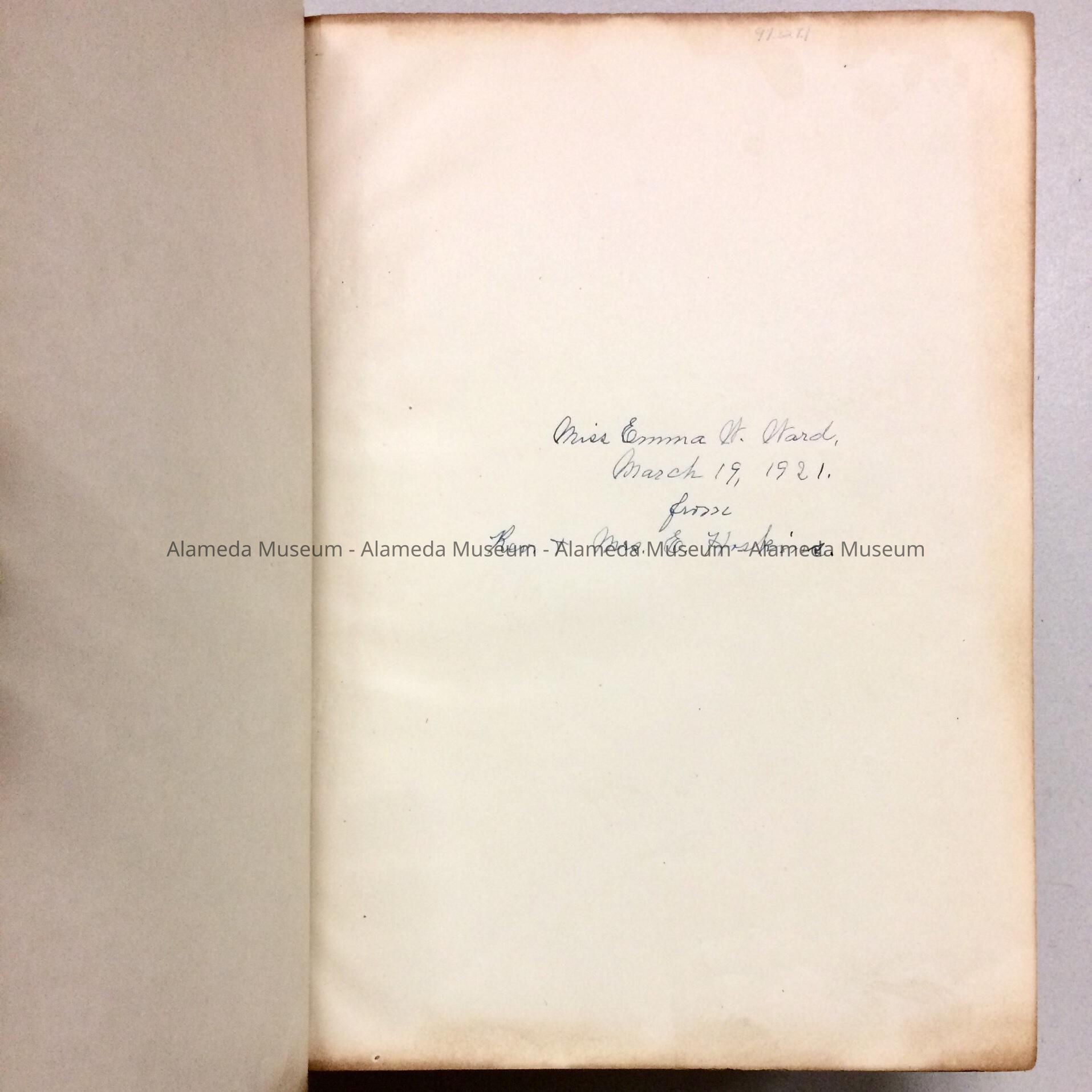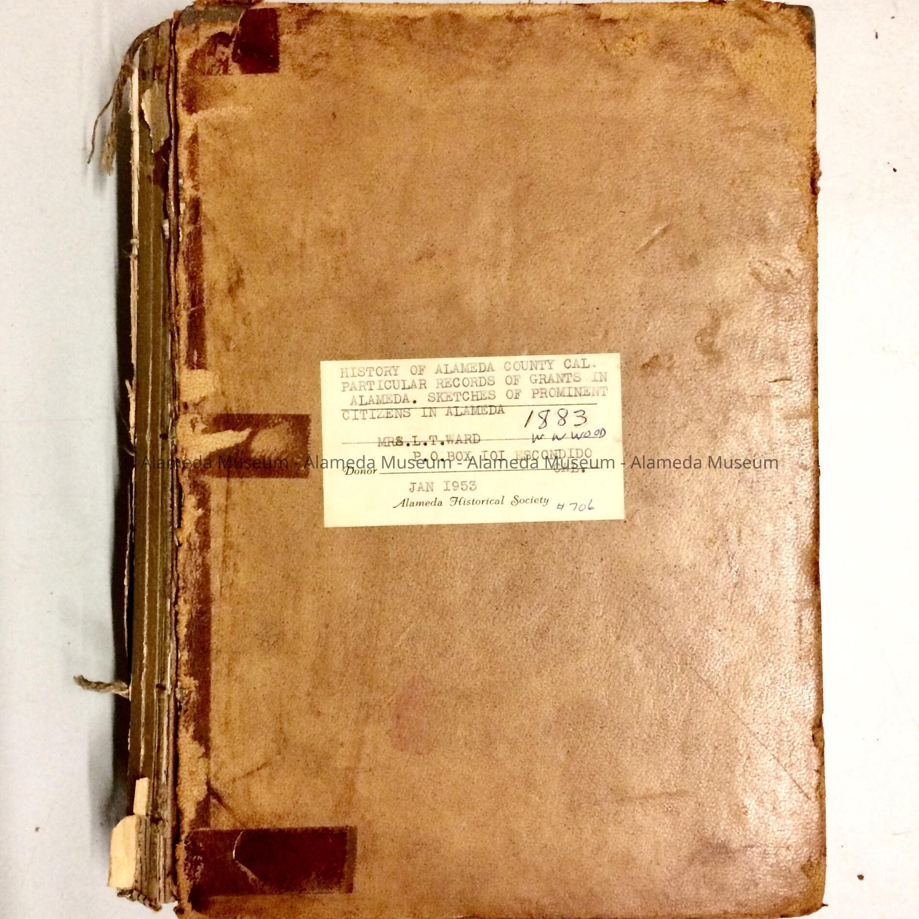 BOOK, ORIGINALLY NUMBERED "706" AND GIVEN TO THE ALAMEDA HISTORICAL MUSEUM IN 1953 AND NEVER OFFICIALLY CATALOGED AT THAT TIME.
