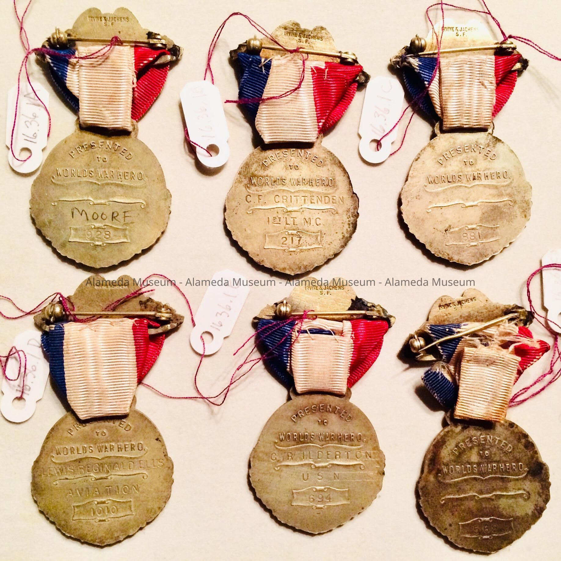 All of these medals were originally presented at a ceremony held in Lincoln Park, Alameda.