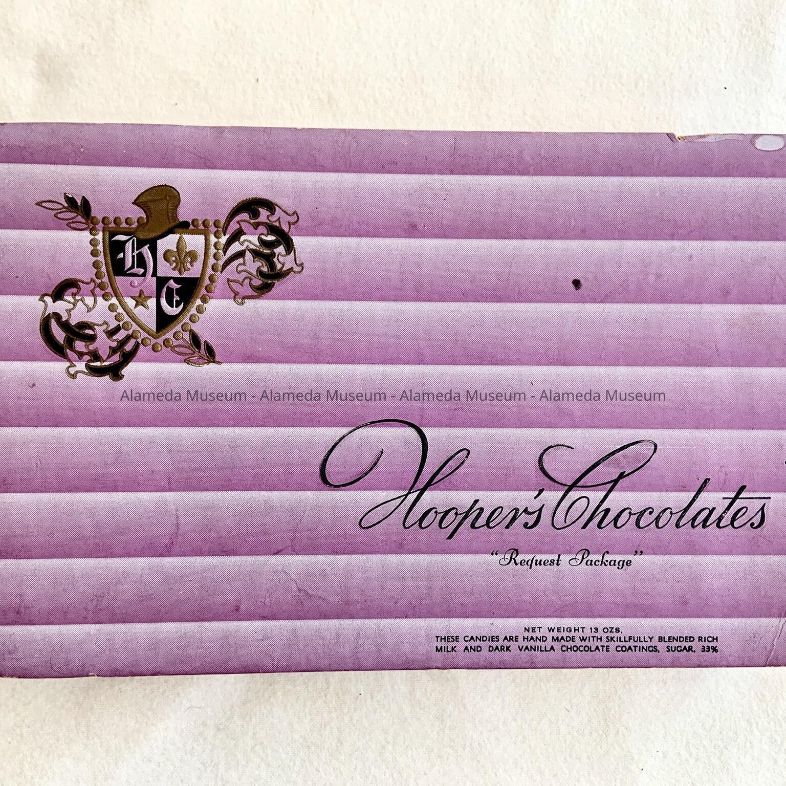 Candy box, from Hooper's Chocolates, Alameda., belonged to Mr. & Mrs. Wm. Cox, old-time residents of the City.