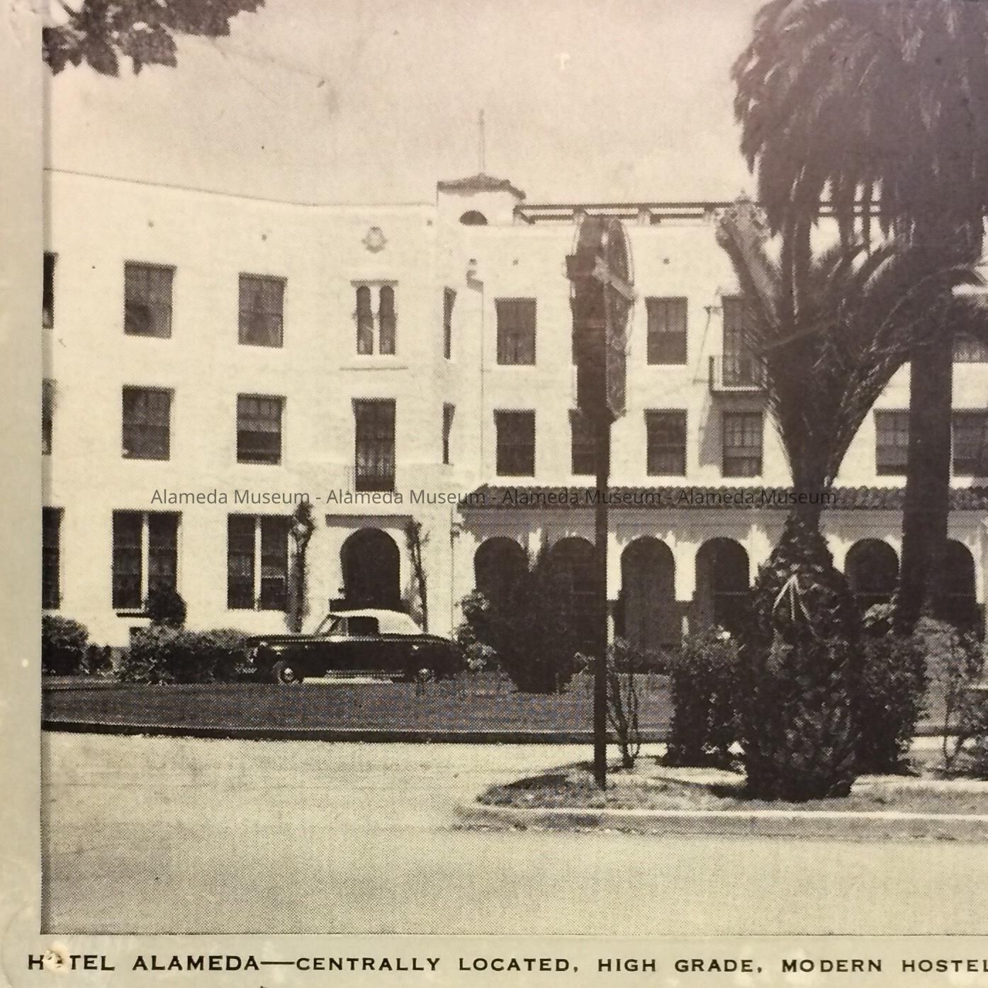 History of Object: Photographic post card depicting the exterior of the Hotel Alameda, in the late 1920's.