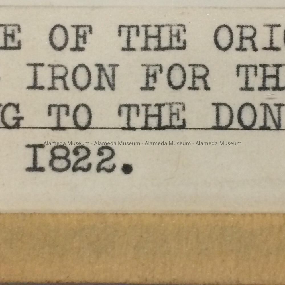 History of Object: This is a picture of the original branding iron for the stock belonging to the Don Peraltas. This is the family brand for their horses and cattle in 1822.