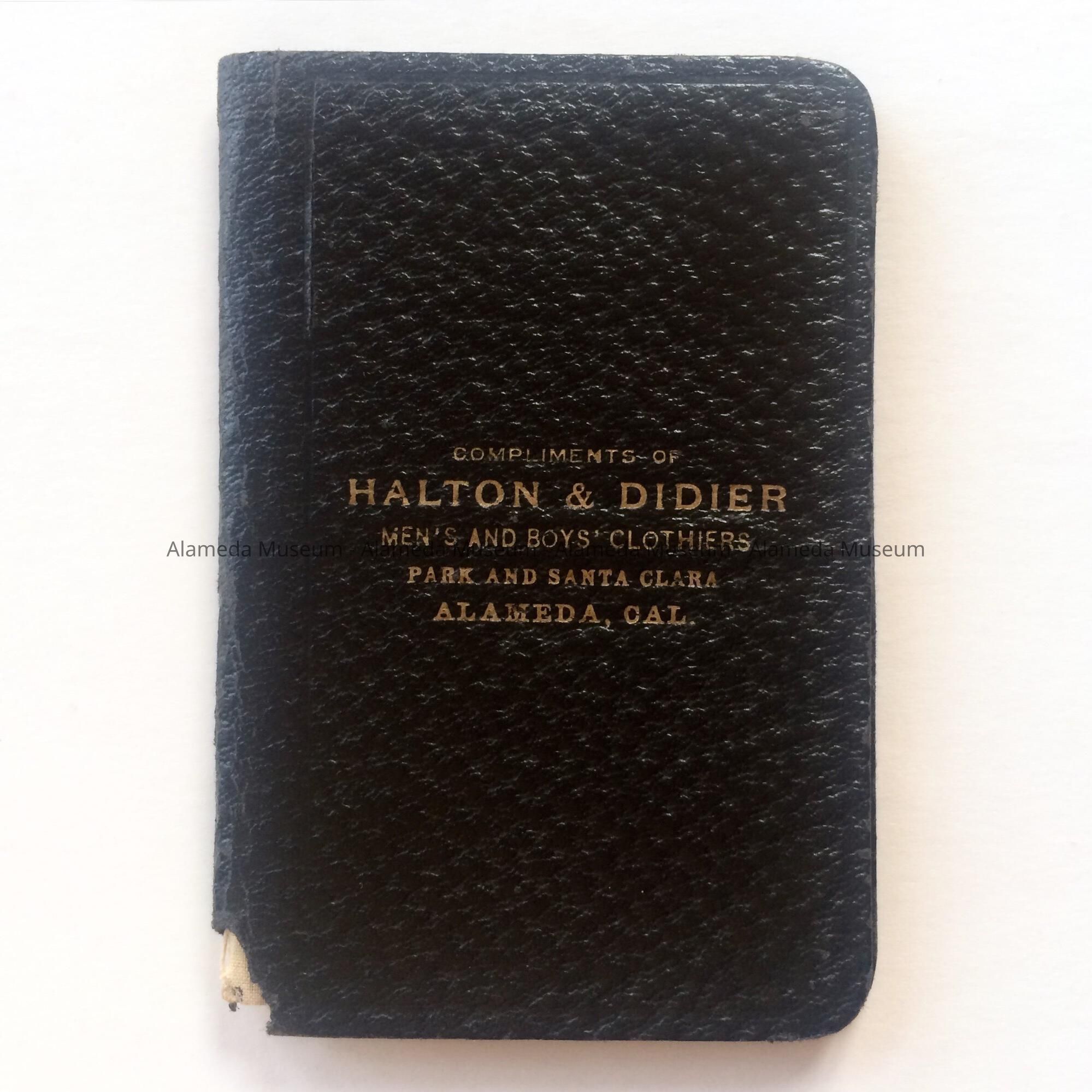 Imitation black leather advertising notebook from Halton and Didier, ClothierEntry/Object ID