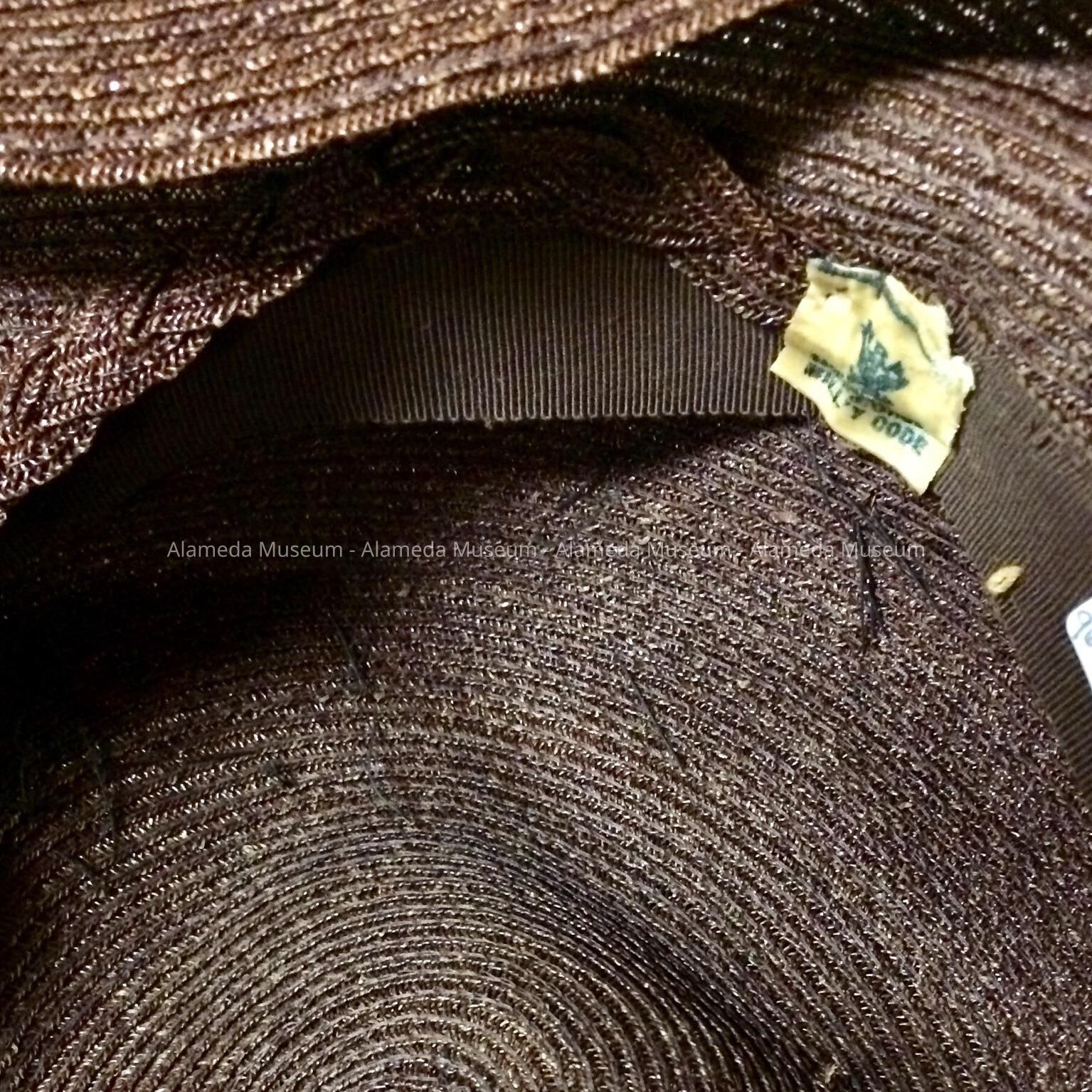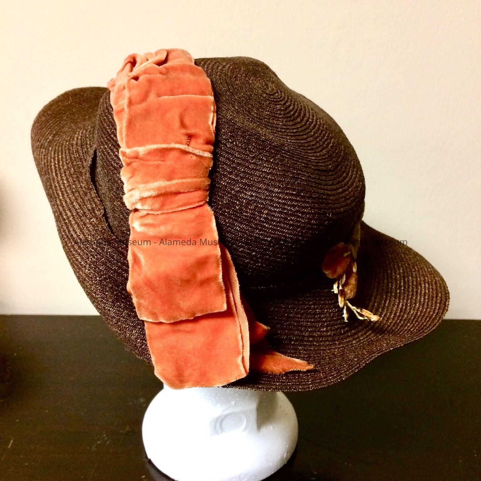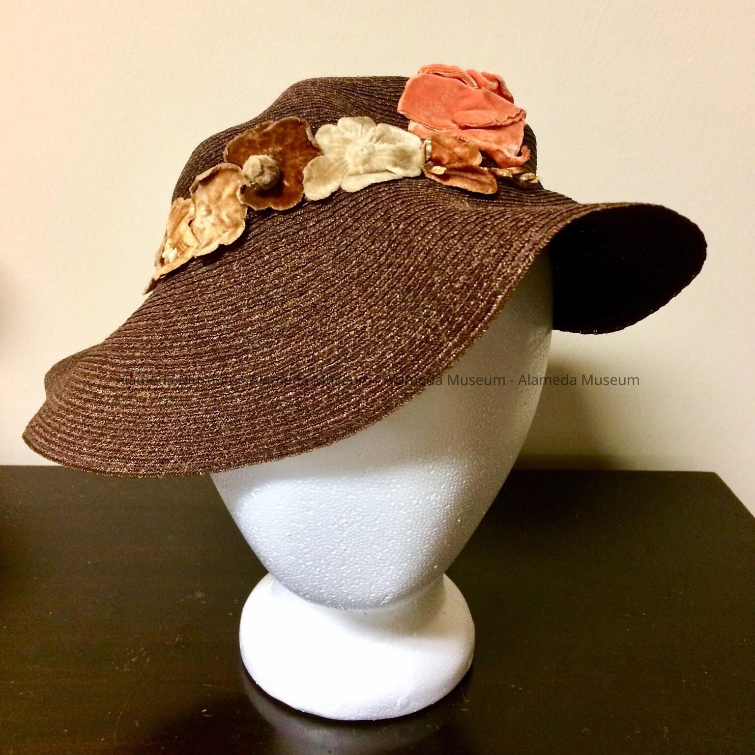 HAT WORN BY VERA GEORGE KNOX, MOTHER OF THE DONOR. MRS KNOX CAME TO ALAMEDA WITH HER LATE FIRST HUSBAND, ALBERT GEORGE, IN THE LATE 1920's.
