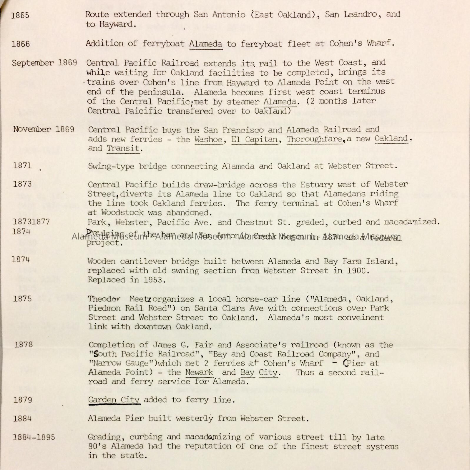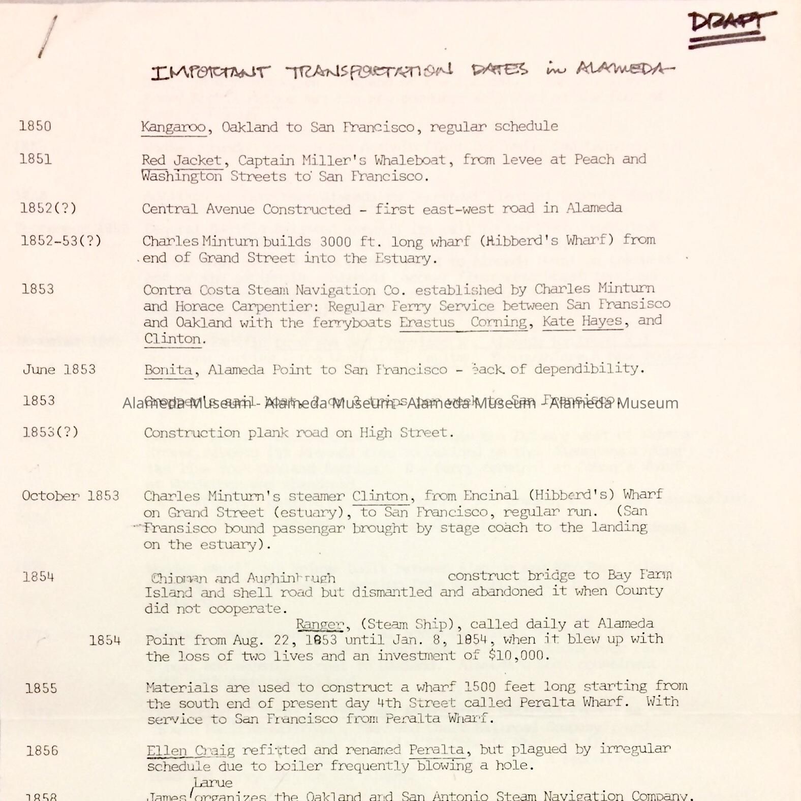 'Important Transportation Dates in Alameda (draft)', c. 1960sEntry/Object ID