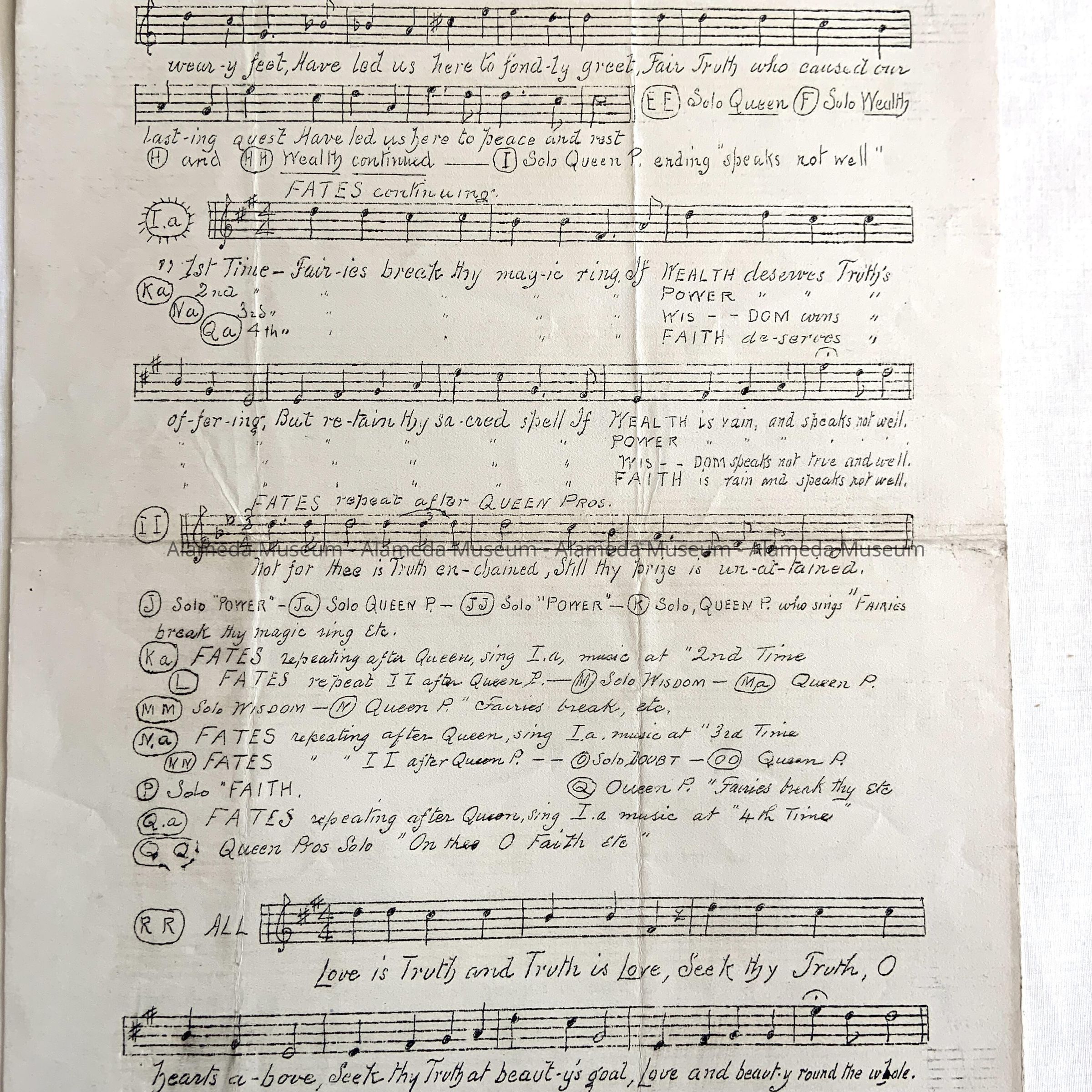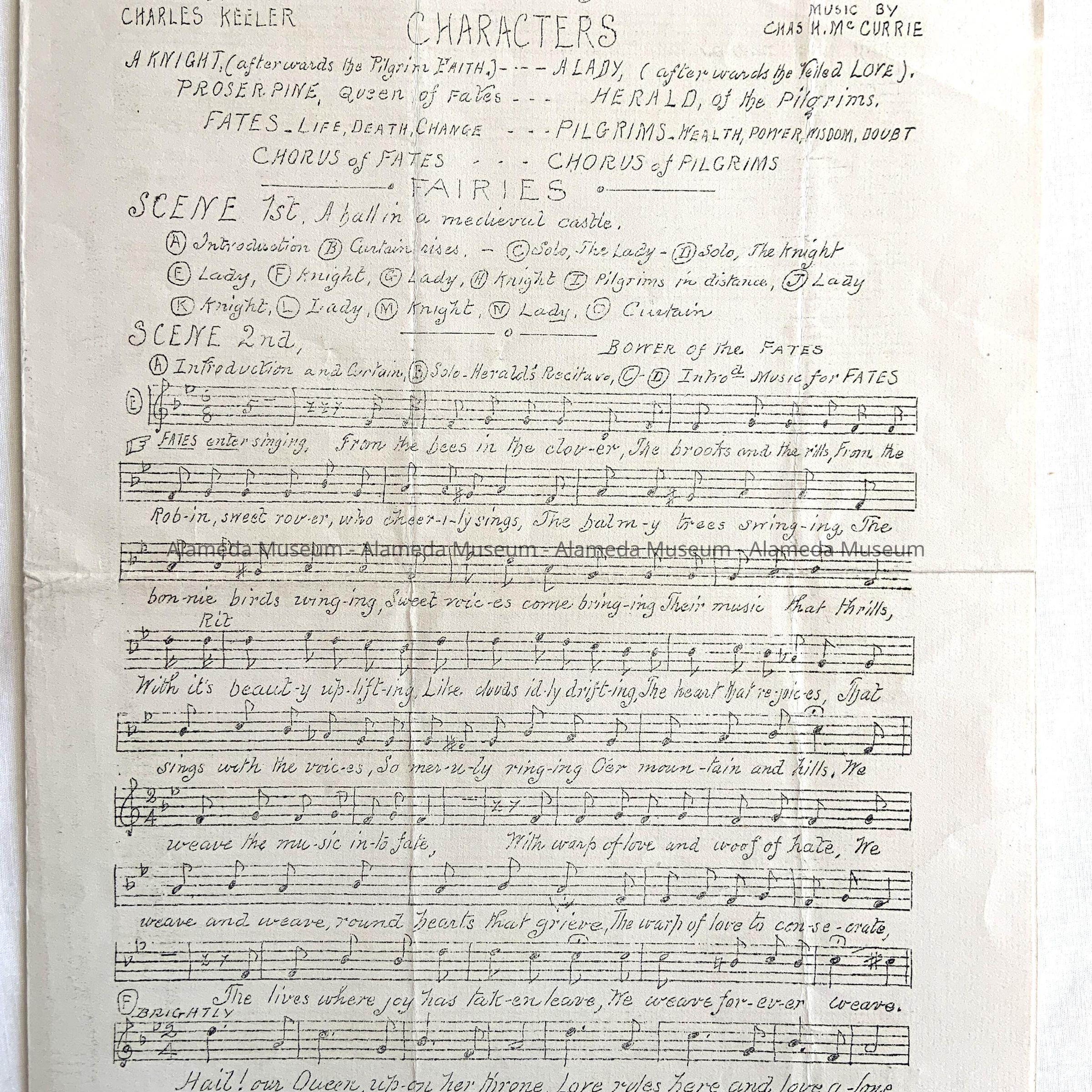 MUSIC COMPOSED AND COPYRIGHTED BY THE COMPOSER --- CHARLES MCCURRIE --- AND WORDS BY CHARLES KEELER. ENTITLED, "IN QUEST OF TRUTH." MR MCCURRIE WAS AT ONE TIME A RESIDENT OF ALAMEDA, AND RESIDED ON CLINTON AVENUE.