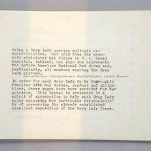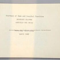 BOOKLET CONTAINING INFORMATION FOR THE GREY LADIES WHO WERE ASSIGNED DUTIES AT THE OAK KNOLL NAVAL HOSPITAL, OAKLAND. BOOKLET WAS DONATED BY THE DAUGHTER OF ALICE MCLAIN, WHO SERVED AS A GREY LADY UNDER THE AUSPICES OF THE ALAMEDA BRANCH OF THE AMERICAN RED CROSS.
